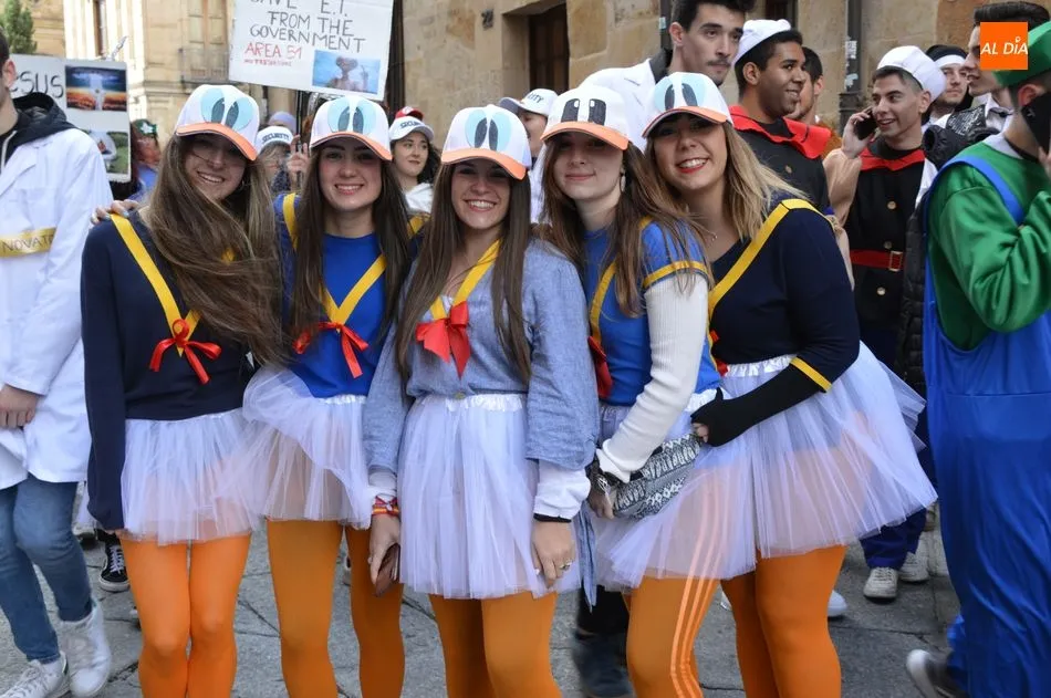 Estudiantes de las facultades de Ciencias y de Ciencias Químicas de la Universidad de Salamanca se disfrazaban este jueves para celebrar la festividad de San Alberto Magno. Así, hemos podido ver hadas, superhéroes, egipcias, guerreras, cocodrilos y hasta conejitos por las calles del casco histórico.