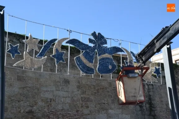 Como se puede comprobar en las imágenes tomadas en la mañana del viernes, operarios de Electricidad Casado, la empresa que se está encargado como es habitual de la colocación del alumbrado, estuvieron instalando una estructura de notables dimensiones entre dos de los postes de iluminación con los que cuenta el Registro. Además del Registro, este año se iluminarán por primera vez, como ya hemos publicado, lugares como las Tres Columnas o la Plazuela del Conde.