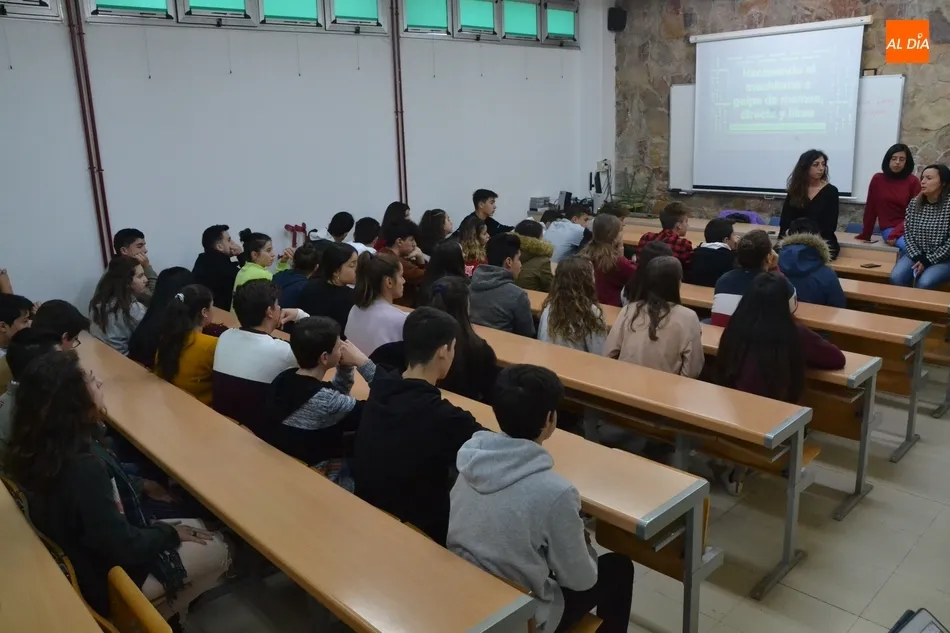 En el marco de las actividades promovidas por el Espacio i y el Ayuntamiento de Ciudad Rodrigo para conmemorar el próximo Día Internacional para la Eliminación de la Violencia hacia las Mujeres, los IES Tierra de Ciudad Rodrigo y Fray Diego Tadeo tuvieron en la mañana del viernes una actividad especial de la mano de Almas Meraki, en la cual los jóvenes asistentes jugaron un papel importante.