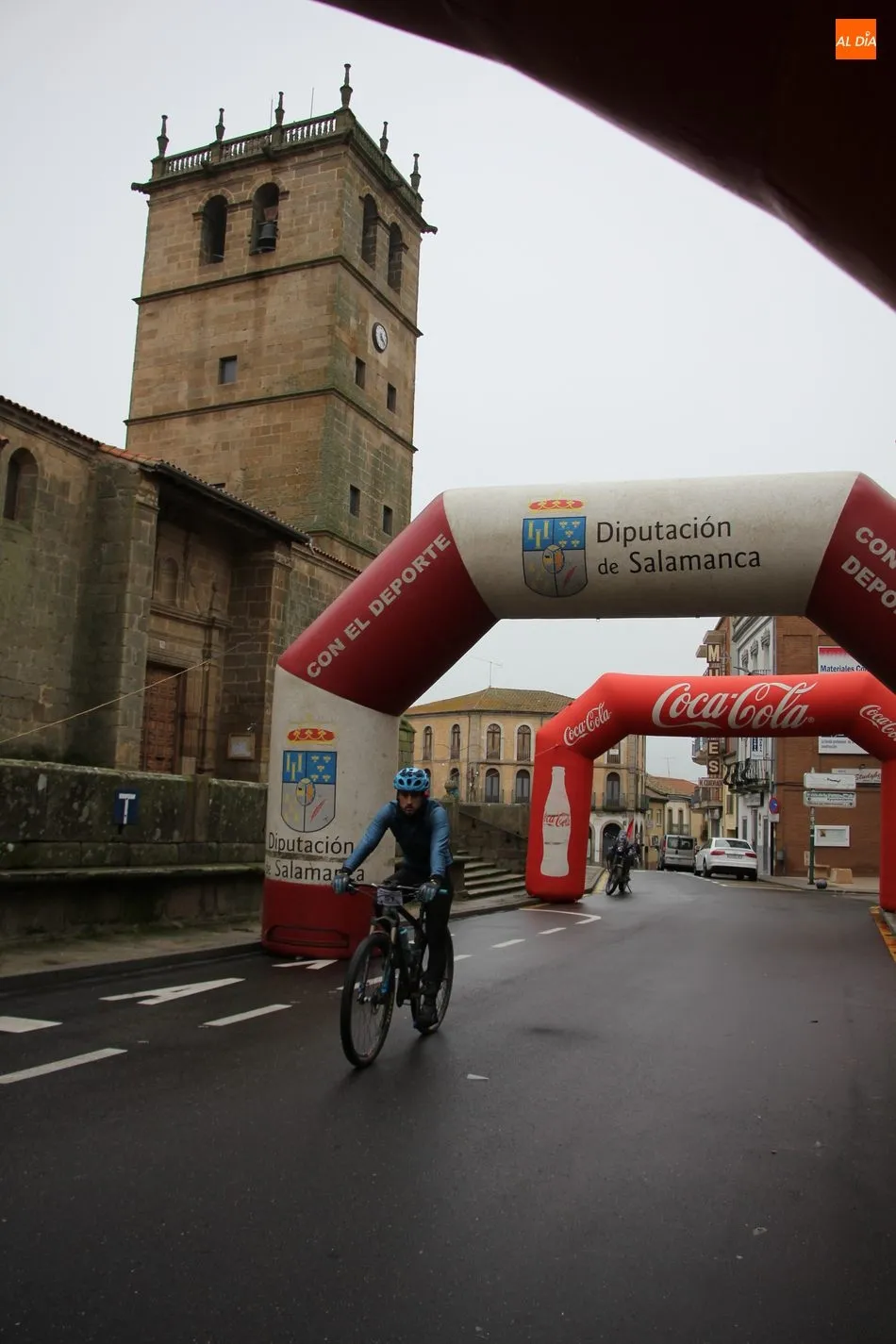 El encargado de dar el pistoletazo de salida era el exconcejal de Deportes Pepe Cordóbés, momento en el que se iniciaba el recorrido de 56 kilómetros bajo una fina lluvia y que acompañó a los corredores durante casi toda la mañana por los caminos de los términos municipales de Vitigudino, Guadramiro, Barreras, Cerralbo, Picones, Gema, Yecla de Yeltes y Moronta.