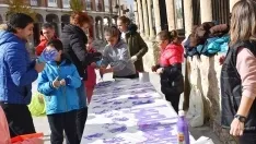 Además, Ciudad de los Niños desplegó en la plaza del Ayuntamiento una pancarta para que entre todos aquellos que desearan participar se plasmaran manos violetas y mensajes contra la violencia de género. Una pancarta que se colgará en el balcón del Ayuntamiento el próximo 25 de noviembre.