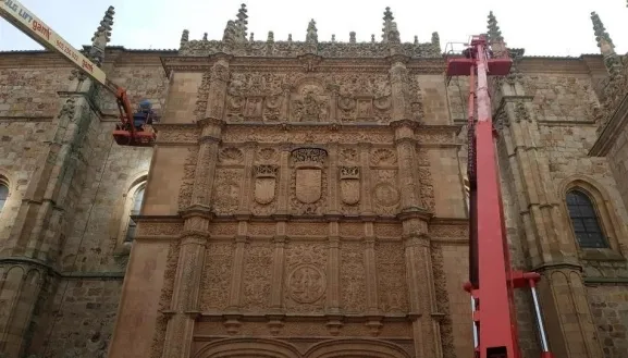 El Edificio Histórico de la Universidad de Salamanca (USAL) aha servido este martes de escenario para el rodaje de la nueva serie televisiva de Álex de la Iglesia, que llevará por título '30 monedas'.
