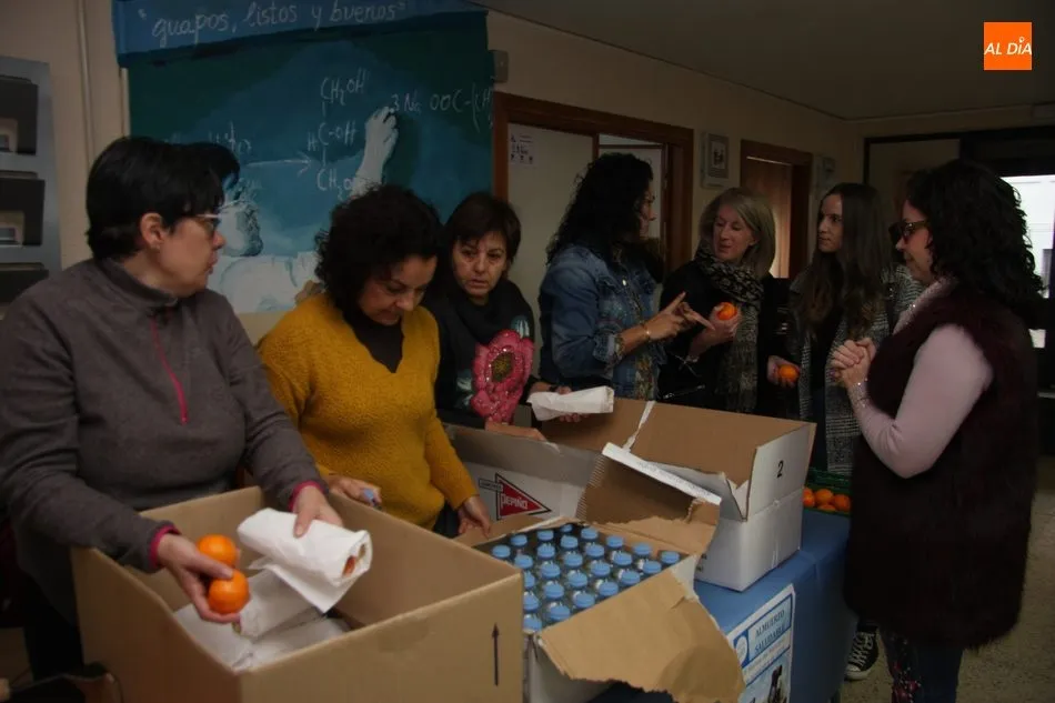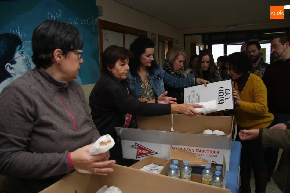 Integrantes de la Asociación de Madres y Padres fueron las encargadas de realizar 175 bocadillos de jamón y su reparto junto con una botella de agua y una pieza de fruta