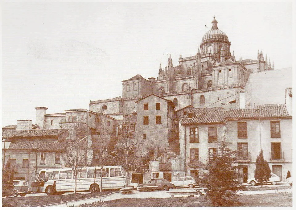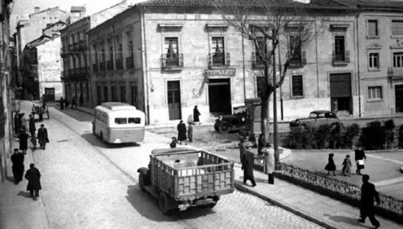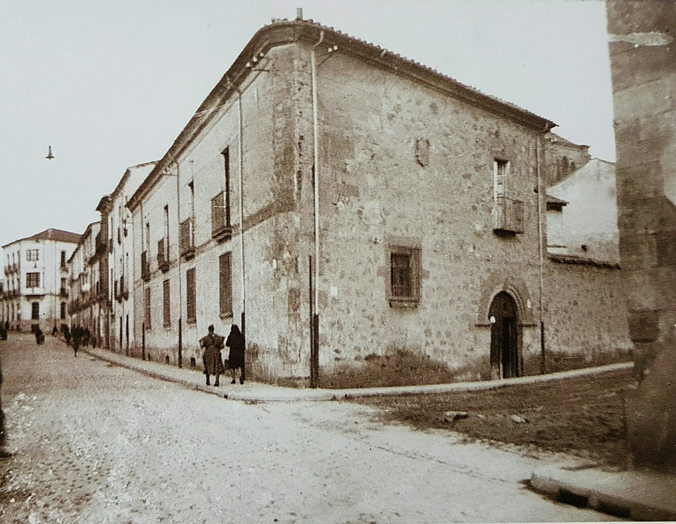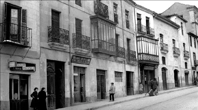 Plaza de Colón, antes, de la Yerba y de los Menores. Escuderos constituye el tercer y último tramo de esta calle, cuyo primer registro nominal se remonta a principios del siglo XIX. Comenzaba traspasado el desaparecido arco de la torre de San Adrián y llegaba hasta la puerta de San Pablo.