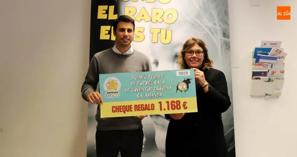 La Asociación de Enfermedades Raras de Castilla y León (Aerscyl) ha recibido este jueves un donativo conseguido en el I Torneo Solidario de fútbol sala, que organizaba Juventud Taurina de Salamanca el sábado 16 abril en el pabellón Julian Sánchez el Charro, con un total de 10 equipos y más de 100 participantes.