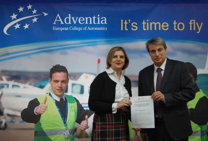 La presidenta de Adventia, Carmen Rodrigo, firmó ayer la adhesión de la Escuela de Pilotos al manifiesto en apoyo del Archivo General de la Guerra Civil