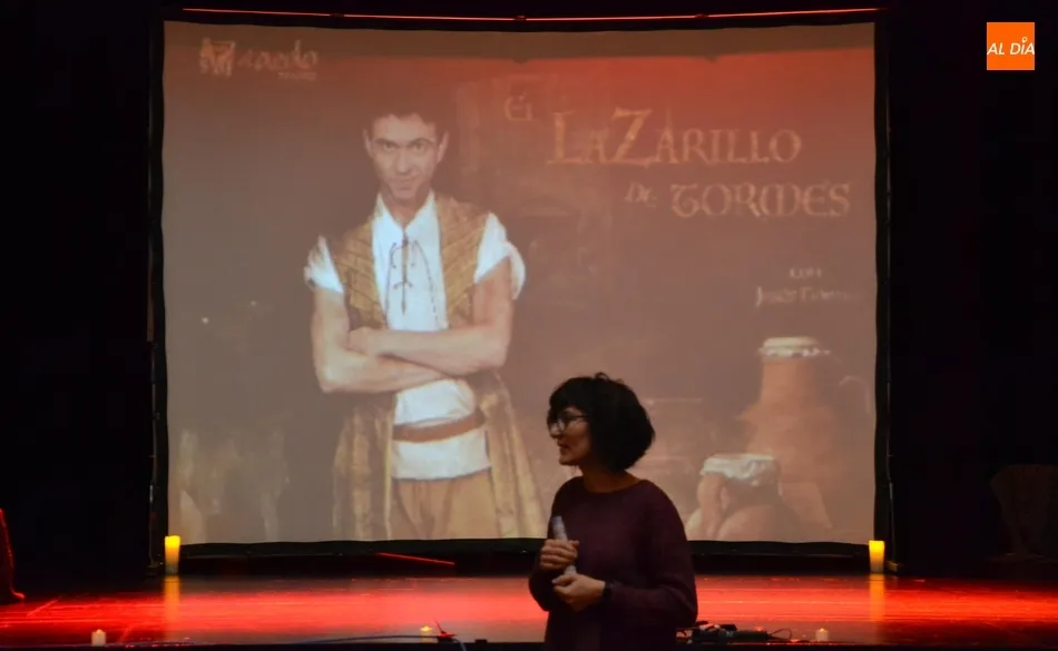 Con Jesús Torres interpretando a Lázaro de Tormes, se va narrando la historia del pícaro más famoso con una puesta en escena multimedia, donde se va relacionando con los personajes que aparecen en una gran pantalla, entre ellos los diferentes amos que tuvo a lo largo de su vida (interpretados por rostros conocidos del teatro y la televisión como Secun de la Rosa, Antonio Albella o Antonio M). Concluida la función, hubo el habitual coloquio de los escolares con Jesús Torres.