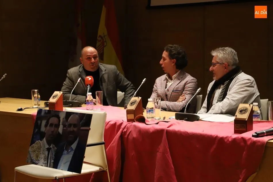El Centro Documental de la Memoria Histórica ha acogido este viernes una tertulia con unas de las familias más taurinas de Salamanca como son los De la Calle. El acto ha contado con la presencia del patriarca de la saga, Vicente de la Calle, y de sus hijos Juan Vicente de la Calle, mozo de espadas, Álvaro de la Calle, torero que este año 2019 cumple 20 años de alternativa.