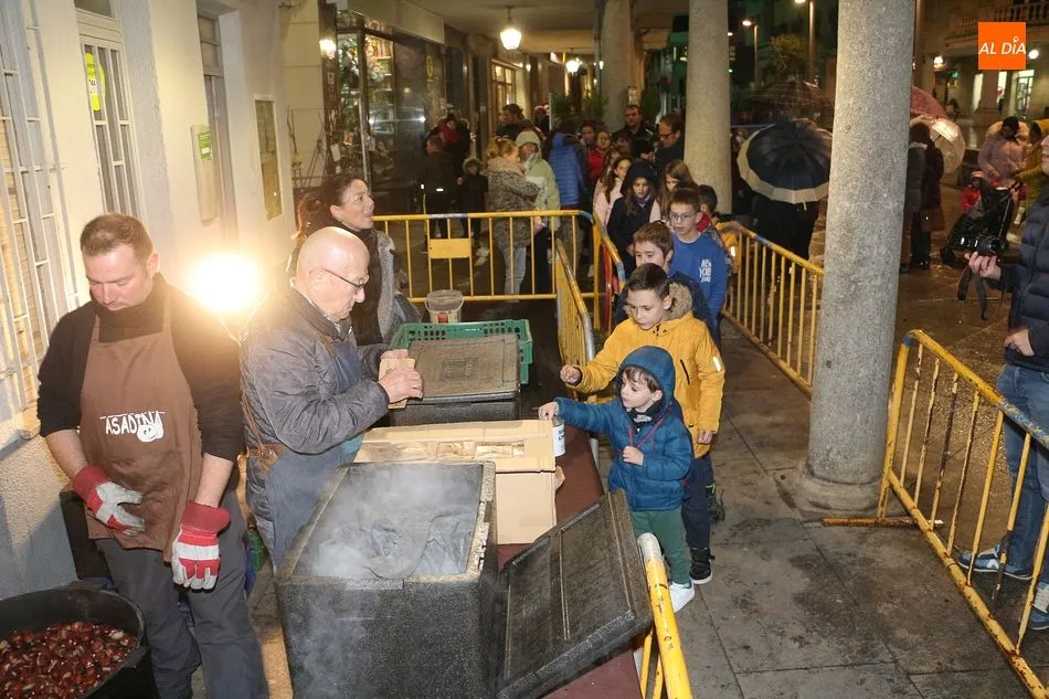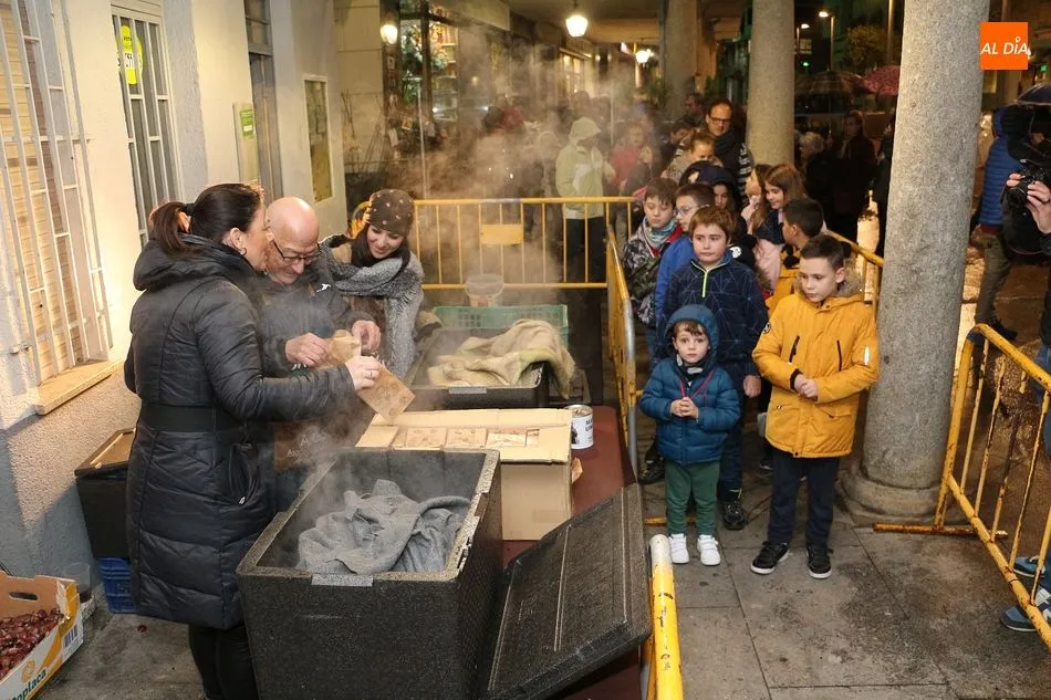 Como cada año, Asadina se encargó de los juegos tradicionales que los más pequeños pudieron disfrutar en varias mesas desde las 17:30 horas. A partir de las 18:30 comenzó el reparto de castañas asadas para todos los presentes, con el reparto liderado por María Jesús Moro, concejala de Cultura.