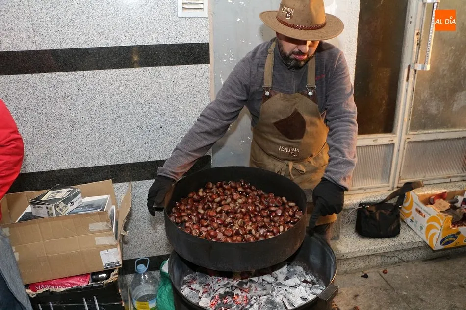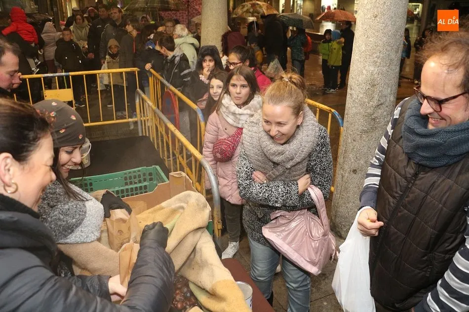 Un año más, la Plaza Mayor ha sido escenario de la tradicional castañada de Guijuelo. El mal tiempo obligó a llevar las actividades a los soportales del ágora, albergando los juegos tradicionales frente al Ayuntamiento y el reparto de castañas asadas frente al local Guijuelo Joven.