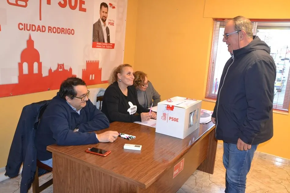 A esta jornada de votación en Ciudad Rodrigo estaban convocadas un total de 91 personas (todos los militantes al corriente de pago de la cuota), de las cuales 12 habían ejercido su derecho al voto de forma previa de manera telemática. De las 79 personas restantes, acudió a la urna situada en la sede del partido en la calle Coria el 65% de ellas (51).