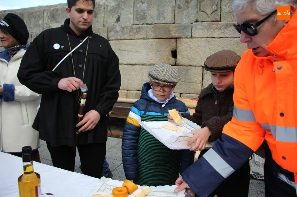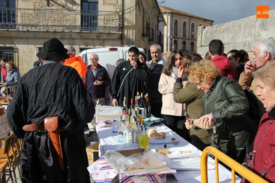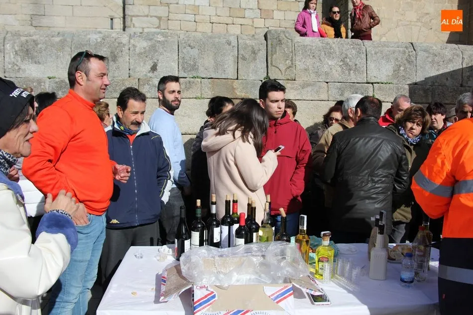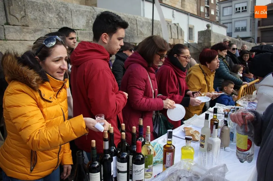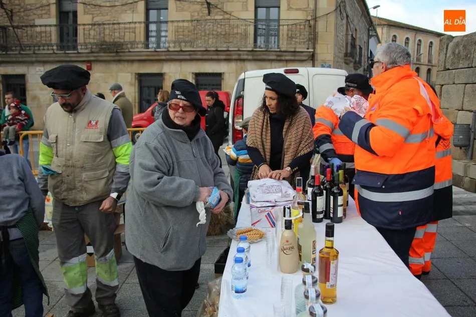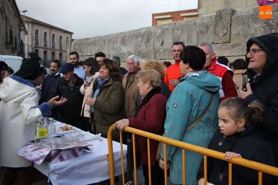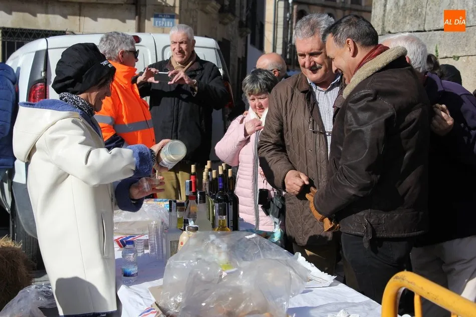 A perrunillas, mantecados y bizcochos se sumaban los licores en el convite, aguardiente, hierbas y otros para entrar en calor en una mañana que amenazaba lluvia, aunque finalmente el cielo encapotado de gris se abrió dando paso a unos tenues rayos de sol.