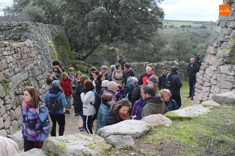 A continuación tendría lugar la visita al castro, recorrido teatralizado y con paradas en la puerta oeste, donde se pueden observar distintas insculturas, la zona de piedras hincadas en la puerta norte, y la observación de la representación de una tumba vetona.