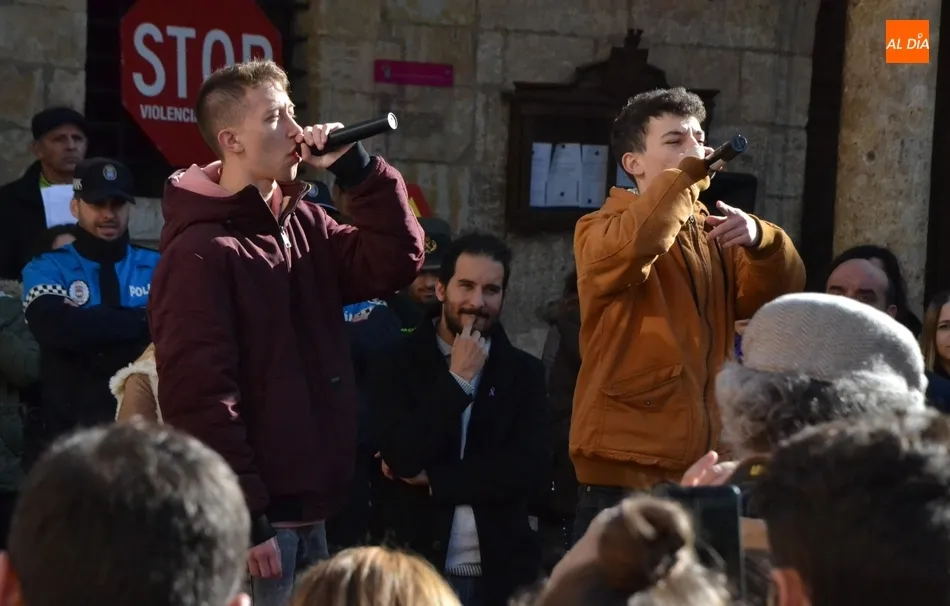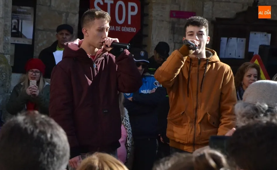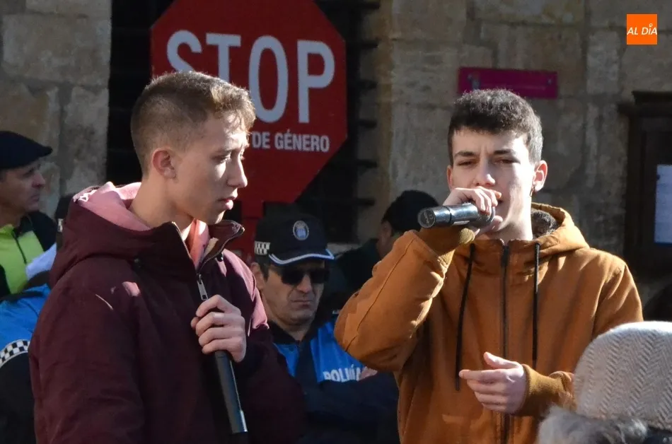 Finalizado el tiempo dado para el desarrollo de la actividad, los responsables de los puestos también se fueron acercando a la Plaza para llevar a cabo un acto que incluyó la lectura de un manifiesto por parte del director de cine mirobrigense Pablo Moreno, y la interpretación de una canción en torno a la violencia de género por parte de dos alumnos del IES Fray Diego Tadeo, Magho y Cram. Para rematar el acto y la mañana, hubo un sorteo de regalos entre todos los participantes (los mapas iban numerados).