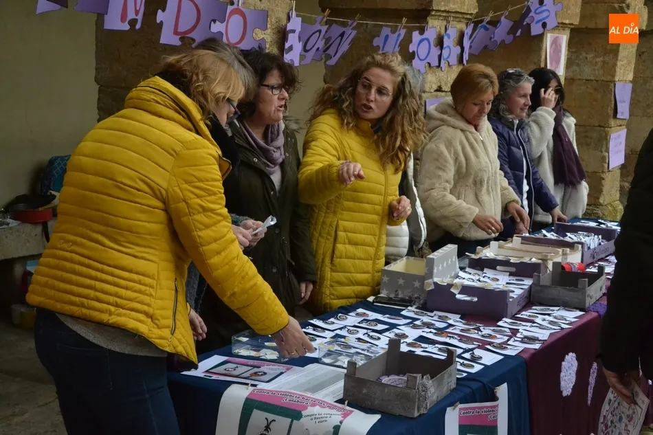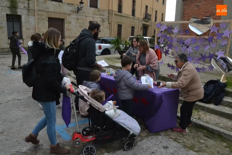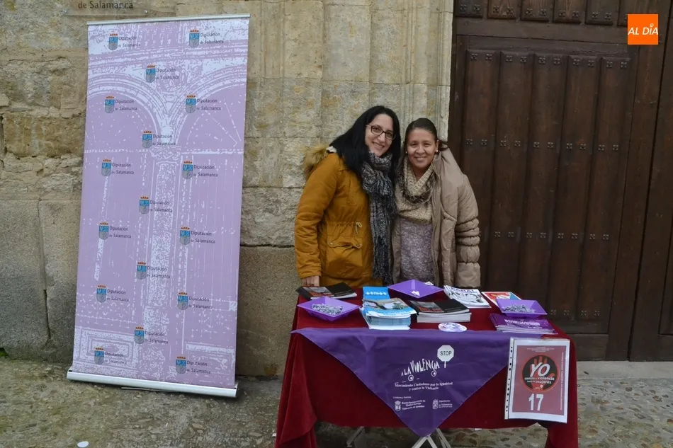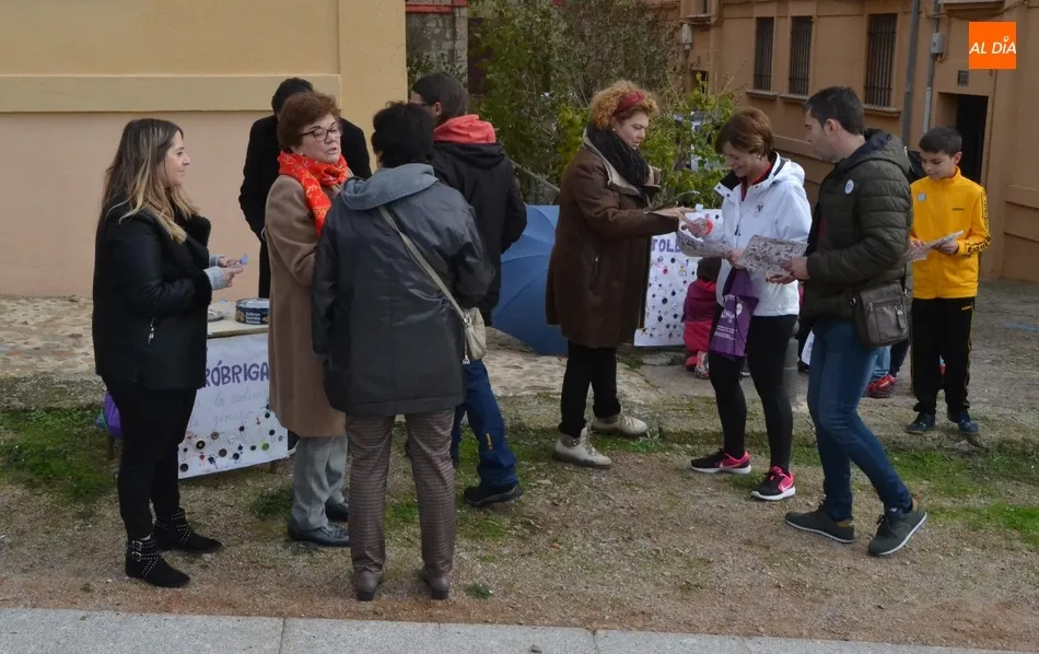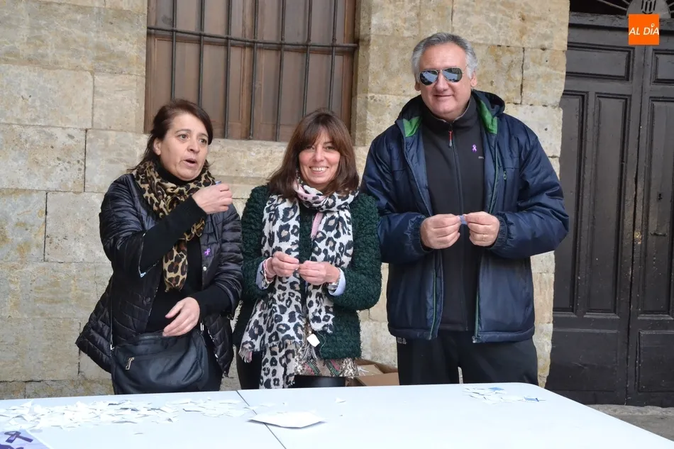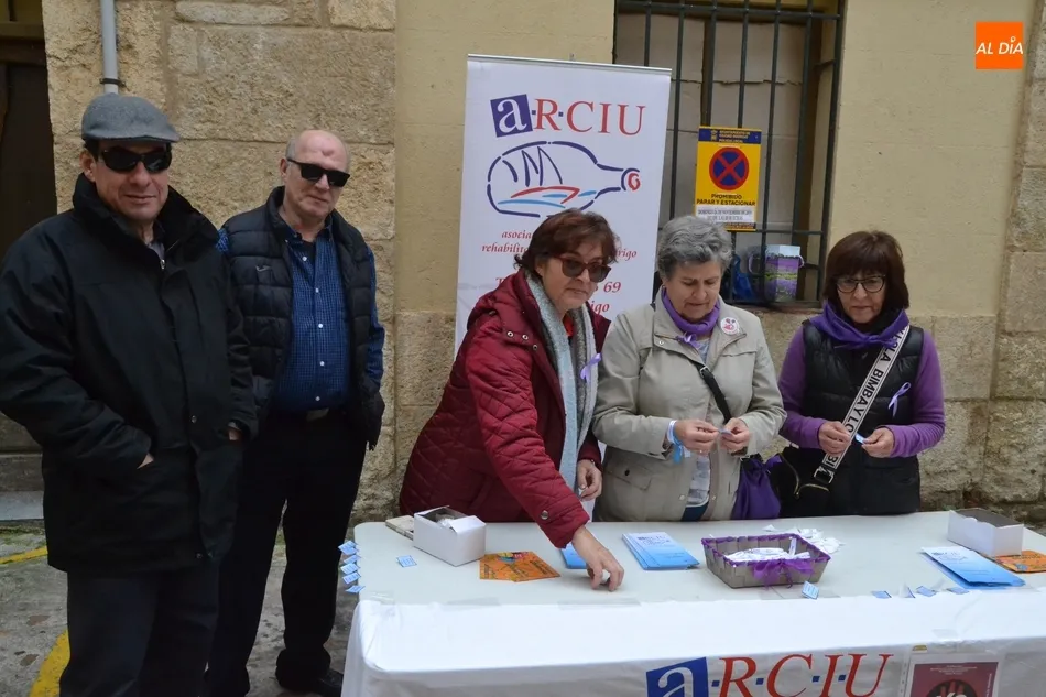 Como otras acciones, en el puesto de AMPLI repartieron lazos morados; en el del Centro de Educación de Personas Adultas, marcapáginas; en el de la Diputación de Salamanca, gominolas violetas; en el de ARCIU, pulseras; en el de Cáritas, globos; en el de Amanecer, caramelos; en el de la Asociación de Diabetes, unas pegatinas especiales; mientras que en el del Colegio Miróbriga tenían expuestos unos dibujos a partir de botones elaborados por los alumnos.