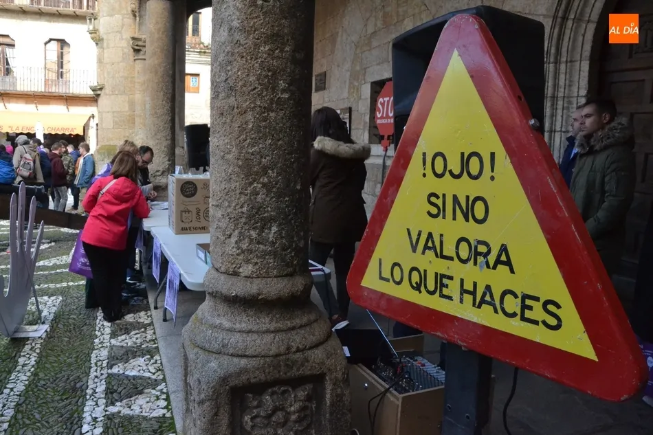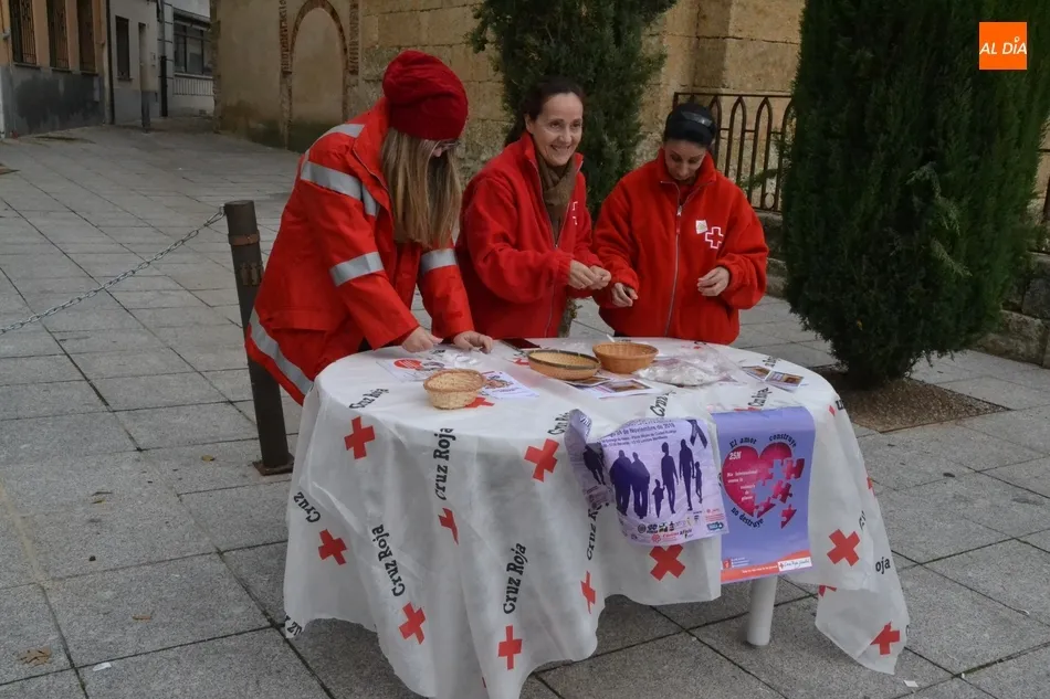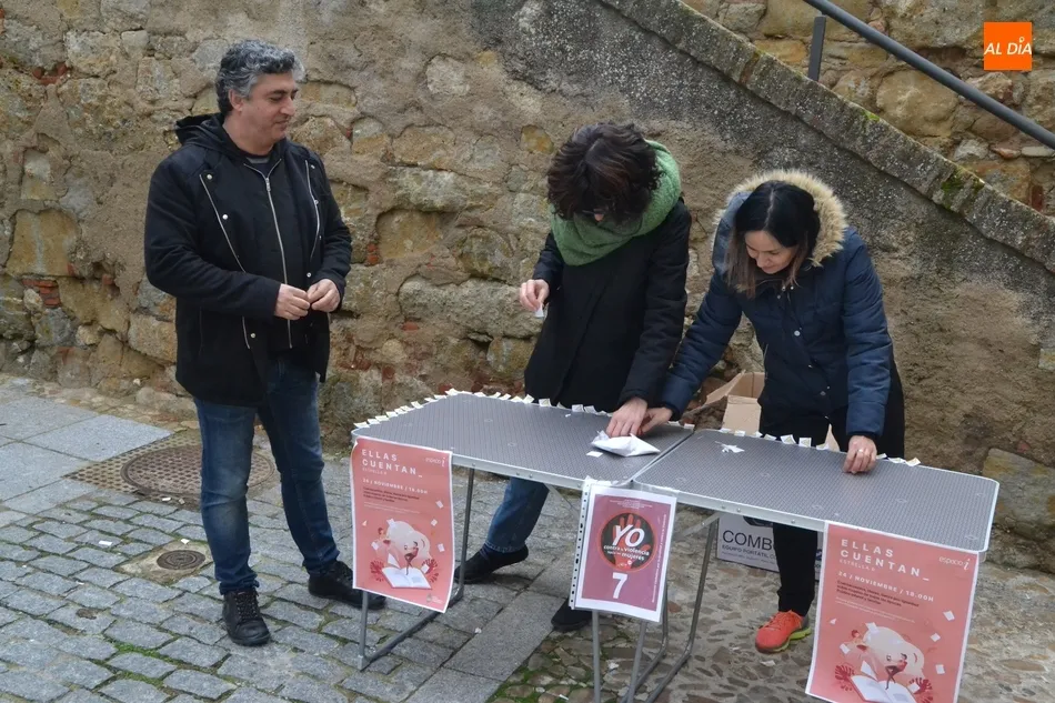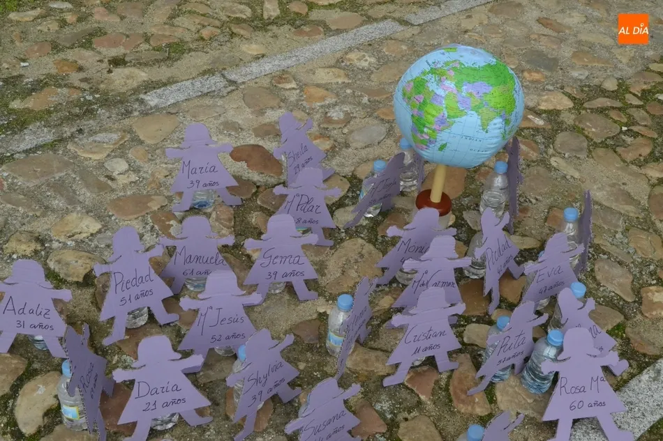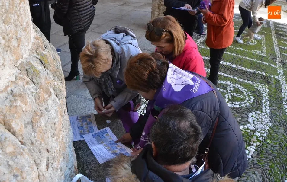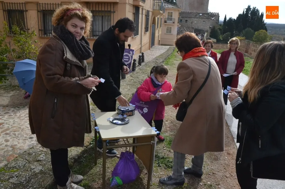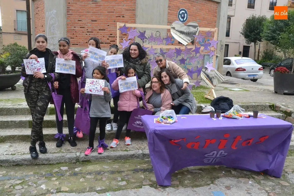 Como otras acciones, en el puesto de AMPLI repartieron lazos morados; en el del Centro de Educación de Personas Adultas, marcapáginas; en el de la Diputación de Salamanca, gominolas violetas; en el de ARCIU, pulseras; en el de Cáritas, globos; en el de Amanecer, caramelos; en el de la Asociación de Diabetes, unas pegatinas especiales; mientras que en el del Colegio Miróbriga tenían expuestos unos dibujos a partir de botones elaborados por los alumnos.