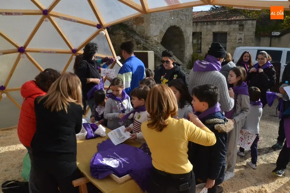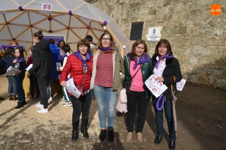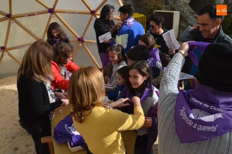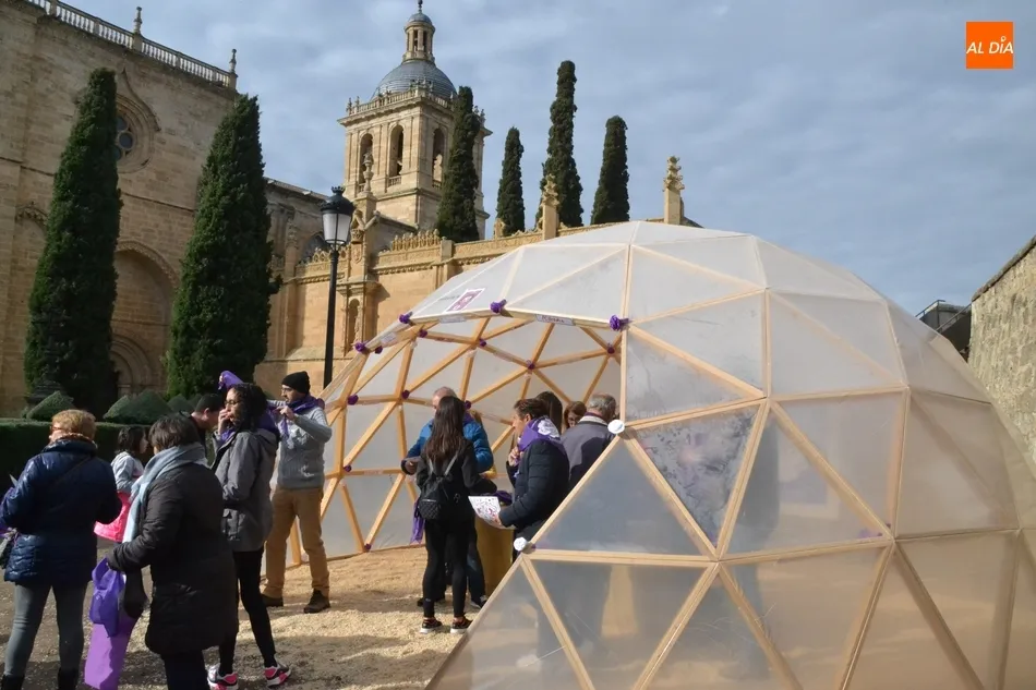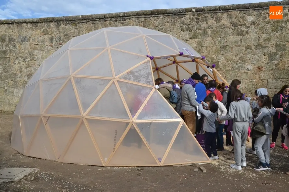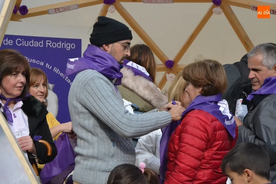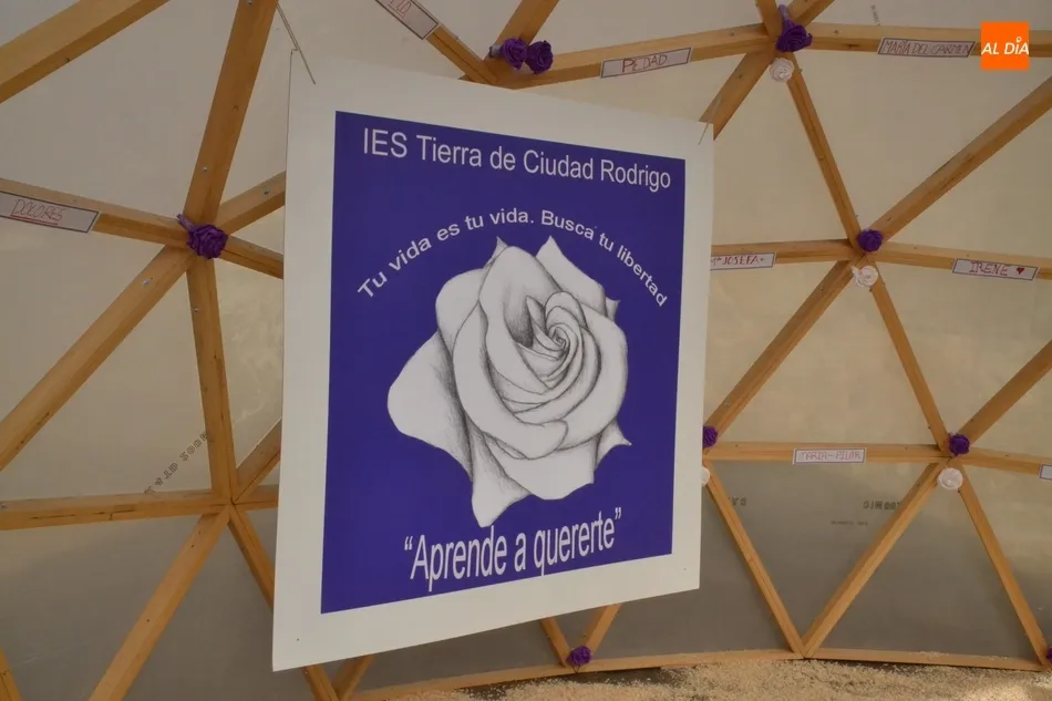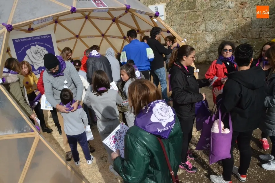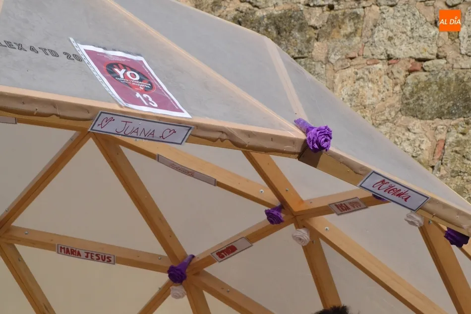 Muchas de esas entidades no se limitaron a estar sin más en sus puestos, sino que realizaron grandes despliegues. El más llamativo fue sin duda alguna el del IES Tierra de Ciudad Rodrigo, que montó junto a las Puertas de Amayuelas una gran cúpula que ha sido creada por los alumnos de sus ciclos formativos de Madera. Este centro regaló a todos los que por allí pasaron un pañuelo morado.
