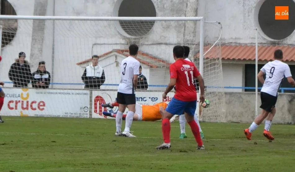 Con ventaja en el marcador, el Benavente se fue arriba, aprovechando además los nervios del Ciudad Rodrigo. Al menos, apenas creaban peligro real (la más clara fue una falta botada cerca del área que despejó Pepo tras abrirse la barrera y colarse el balón por allí).