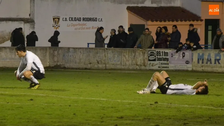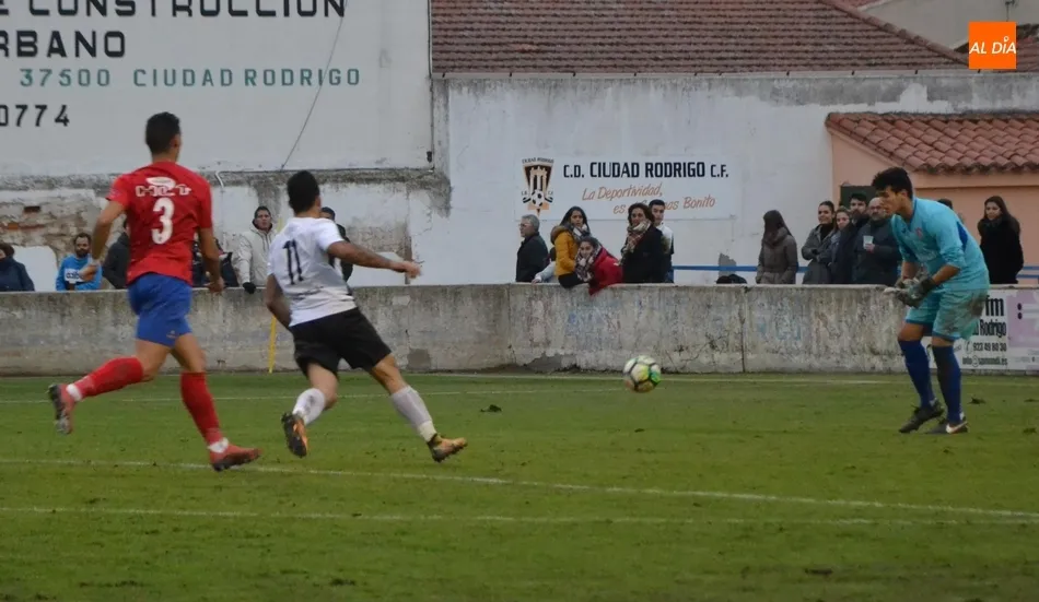 Justo ya en el rush final de la primera parte, el Ciudad Rodrigo creó dos grandes ocasiones, pero no se pudo conseguir el empate que hubiera venido tan bien antes del descanso. En el 40?, Edu Sánchez le metió un pase preciso a Marcial quién desde dentro del área sacó un tiro fuerte que detuvo el guardameta; y en el 42?, Maza le metió un balón en largo a Alberto García quién ante la salida del portero lo probó de lejos, yéndose el balón al lado del palo.