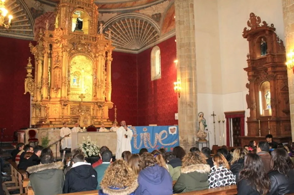 A los pies del altar se podía leer el lema de este curso, ?Vive?, formado por las fotografías de todos los alumnos del colegio