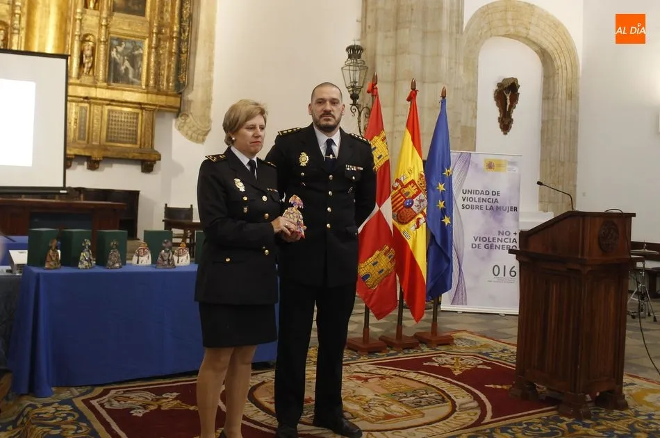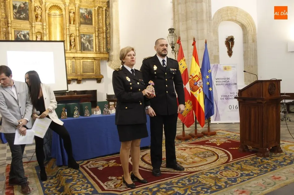 Acompañada por la subdelegada del Gobierno en Salamanca, Encarnación Pérez, la delegada del Gobierno ha repasado los premiados y sus principales méritos para el reconocimiento, y ha comenzado por la Unidad de Atención a la Familia y Mujer (UFAM) de la Comisaría Provincial de la Policía Nacional de Salamanca, una unidad policial especializada en la prevención e investigación de las infracciones penales relacionadas con la violencia de género y sexual.