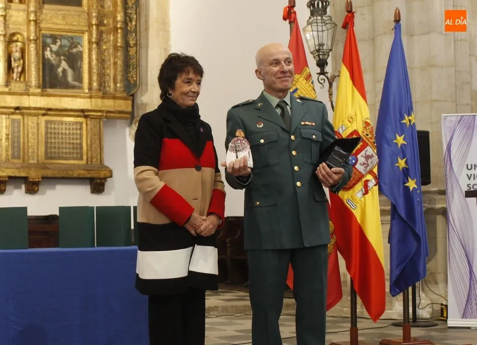 La delegada del Gobierno en Castilla y León, Mercedes Martín, también entregaba dos menciones especiales a título individual. Una al guardia civil Manuel Casado, integrante del Seprona de Ávila que, al ser el agente que estaba más cerca de El Tiemblo, donde se estaba produciendo un presunto caso de violencia de género, decidió actuar y evitó que la víctima sufriese agresión alguna, a pesar de que él recibió varias cuchilladas del agresor en el cuello, clavícula y brazo izquierda, con pronóstico grave en aquel momento.