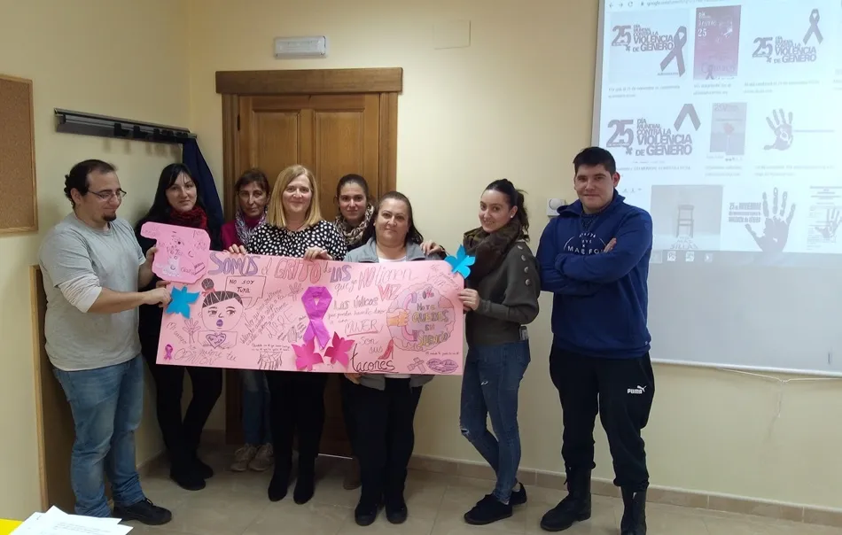 Los alumnos y responsables del Programa Mixto de Formación y Empleo ?El SAD en Alto Águeda? que está impartiendo la Mancomunidad Alto Águeda también se sumaron en la mañana del lunes a la conmemoración del Día Internacional para la Eliminación de la Violencia hacia las Mujeres, mostrando públicamente su rechazo a la violencia de género. En su caso, esta conmemoración tuvo lugar en el marco de uno de los módulos con los que cuenta el programa formativo, dedicado a la igualdad de género.