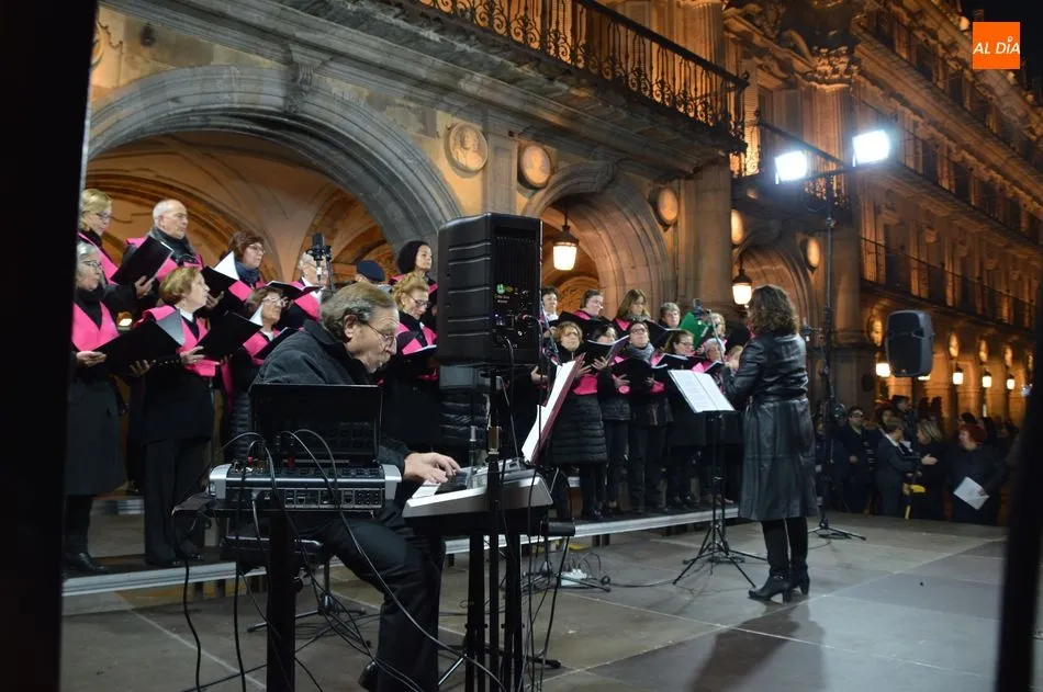 La programación del Ayuntamiento de Salamanca ha incluido también la actuación del coro de Afibrosal (Asociación de Fibromialgia y Fatiga Crónica de Salamanca) dirigido por María Dolores Sánchez Martínez y acompañado en los teclados por Gabriel Sánchez Muñoz. Por último, la fuente de la Puerta de Zamora se ha iluminado de color morado para conmemorar este Día Internacional contra la Violencia de Género.