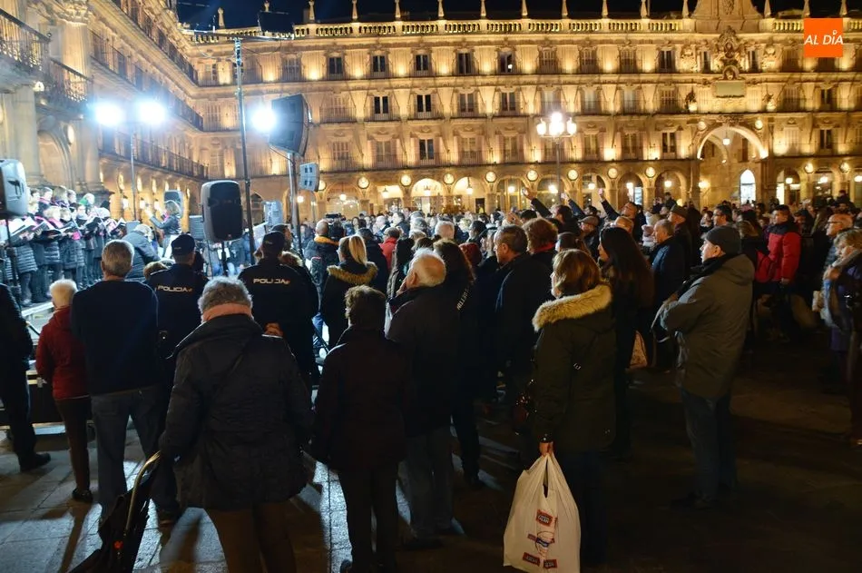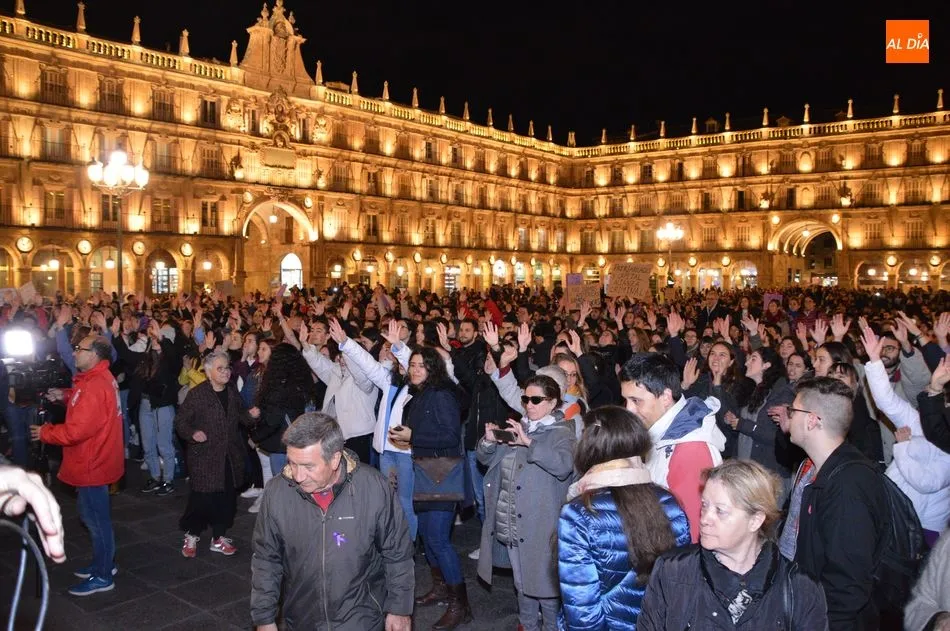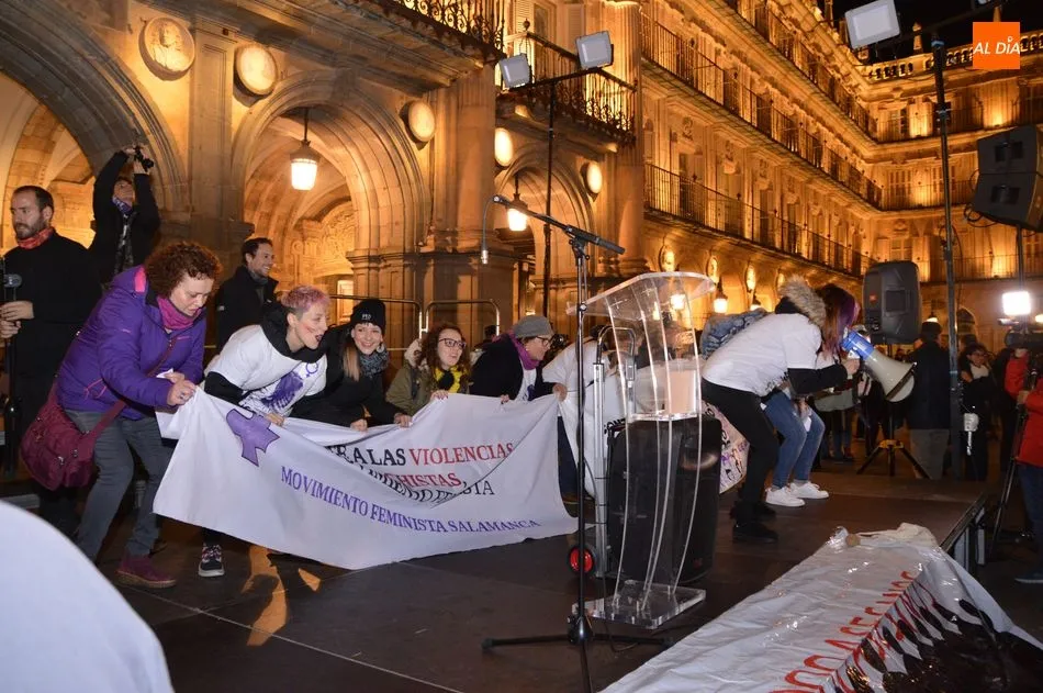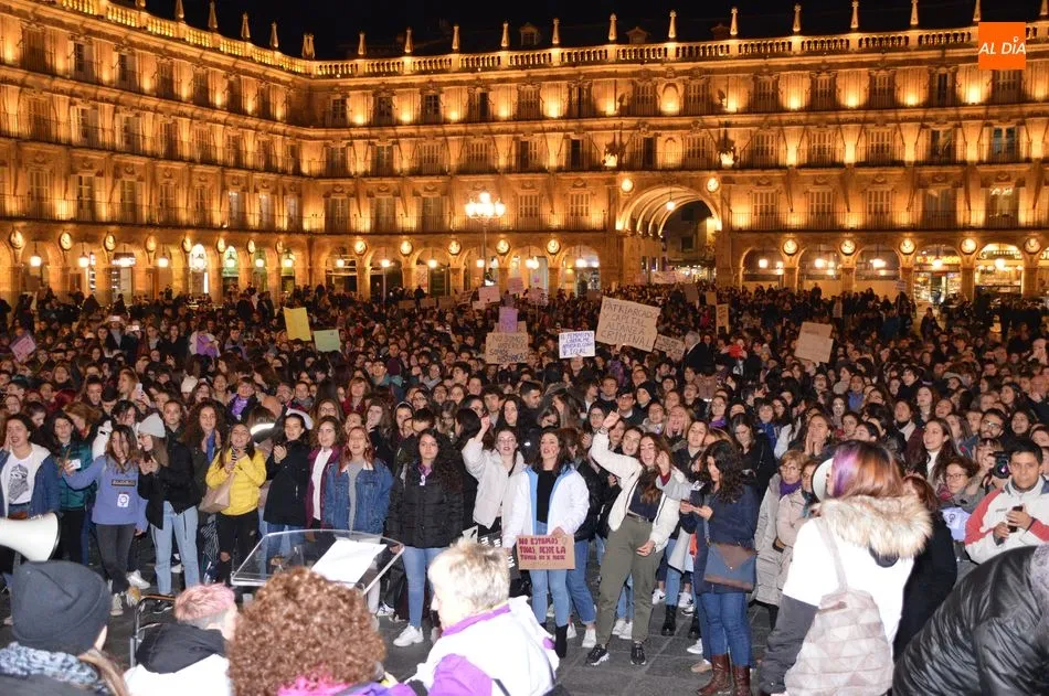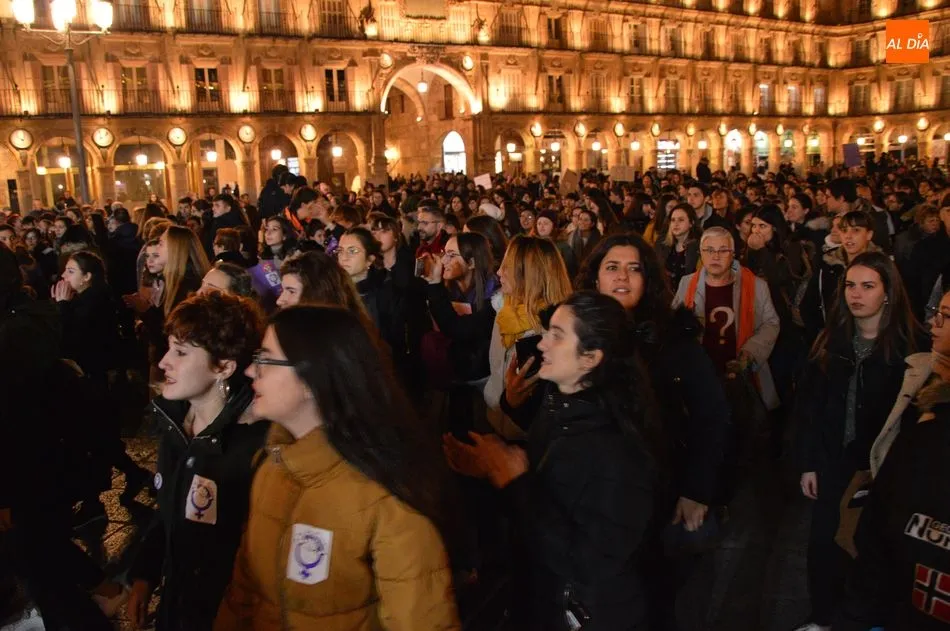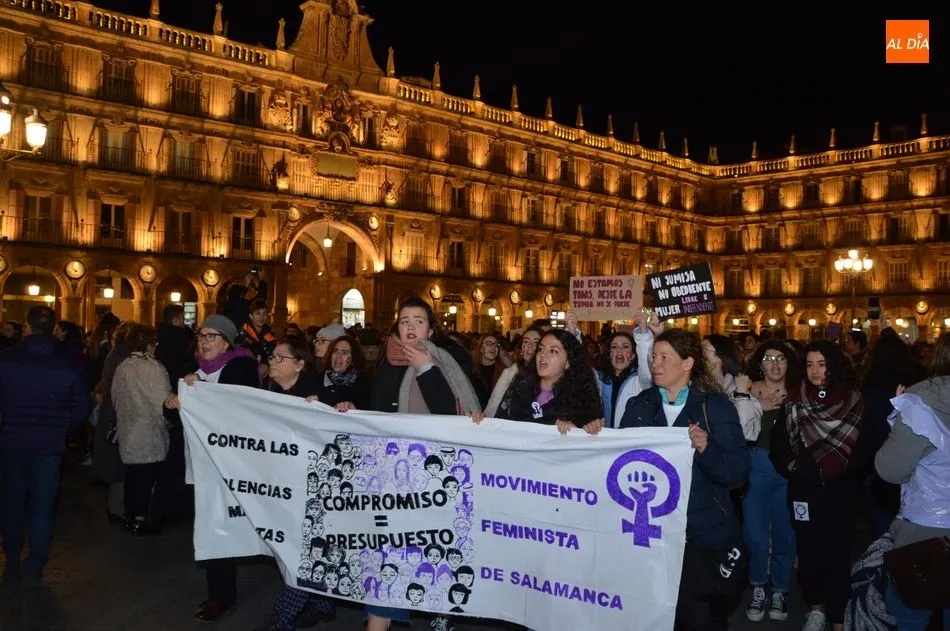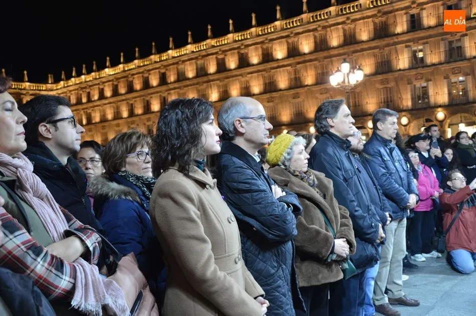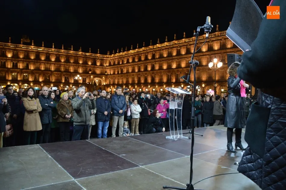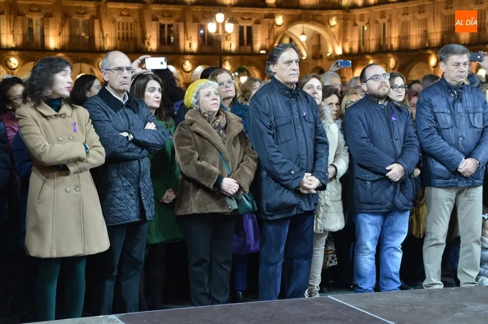 Autoridades y ciudadanos han asistido en la Plaza Mayor a la lectura de un manifiesto, mientras que el Movimiento Feminista de Salamanca ha celebrado una gran manifestación desde la plaza de la Concordia