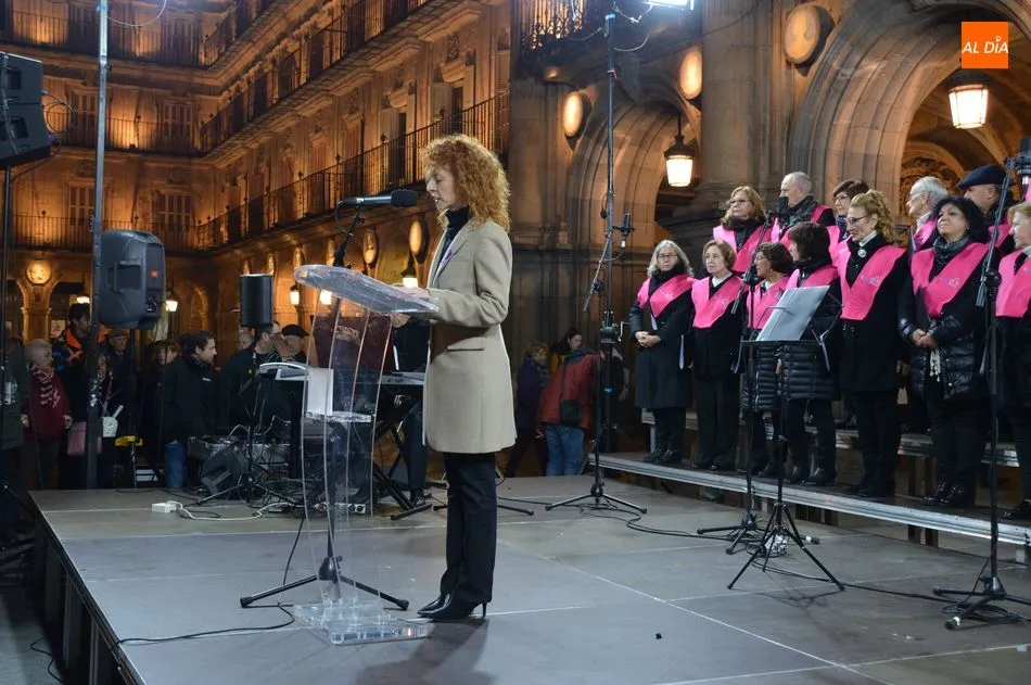 Salamanca se ha sumado este lunes a la celebración del Día Internacional de la Eliminación de la Violencia contra la Mujer con diferentes actos que han culminado esta noche en la Plaza Mayor con la lectura de un manifiesto que, como en ediciones anteriores, ha estado coordinado la profesora de la Universidad de Salamanca y experta en Violencia de Género, Marta del Pozo.
