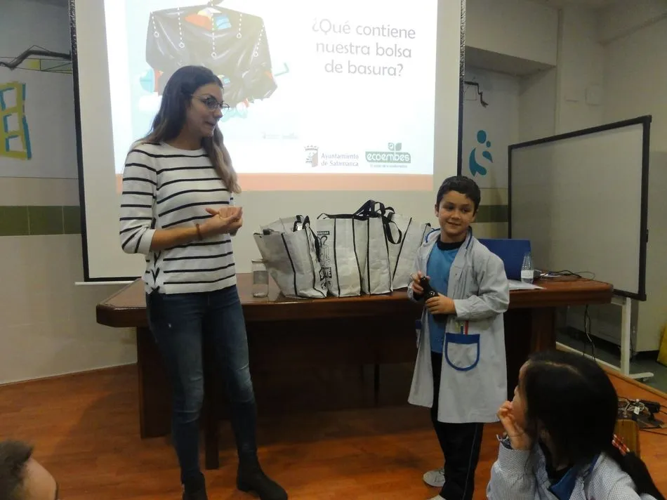 El Ayuntamiento de Salamanca y Ecoembes han organizado un taller en el colegio San Juan Bosco con el título ?Piensa en Salamanca. Recicla-Disección de una bola de basura?.