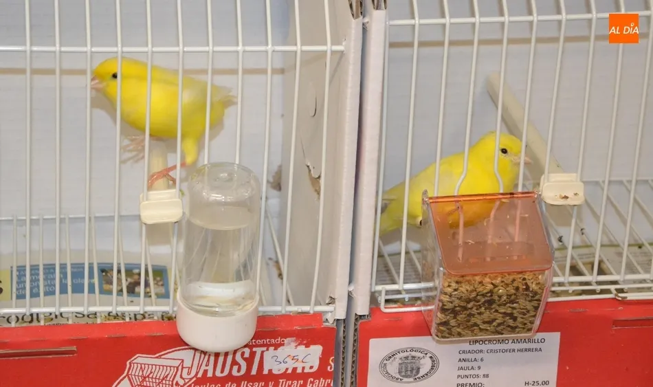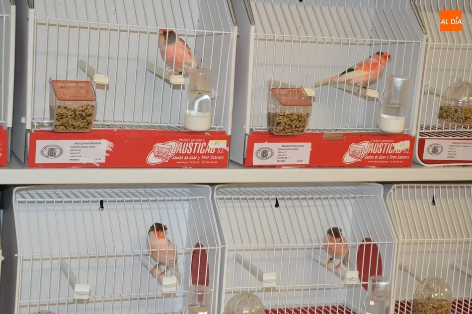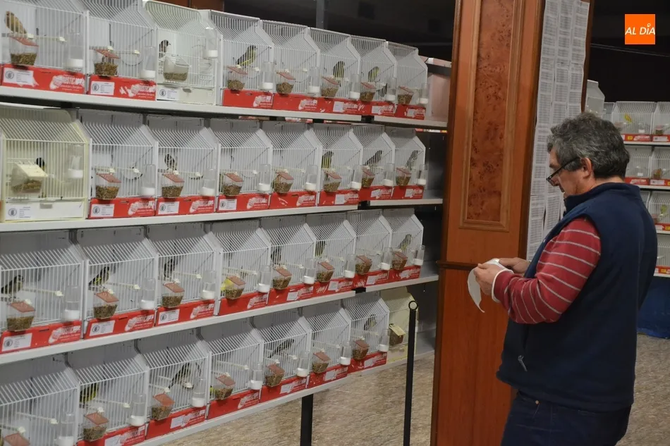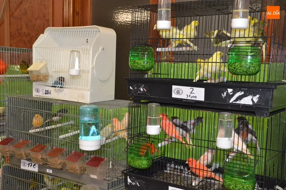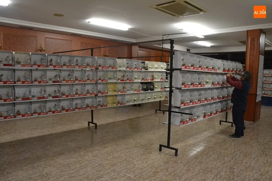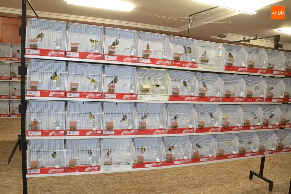 Aunque al Concurso se han presentado 650 pájaros, las dependencias del antiguo Hotel Lima reúnen en total un millar de ejemplares, ya que a los mencionados hay que unir otro importante volumen para venta (que están colocados en un lateral independiente en jaulas compartidas, mientras que los que optan a concurso está cada uno en su jaula).