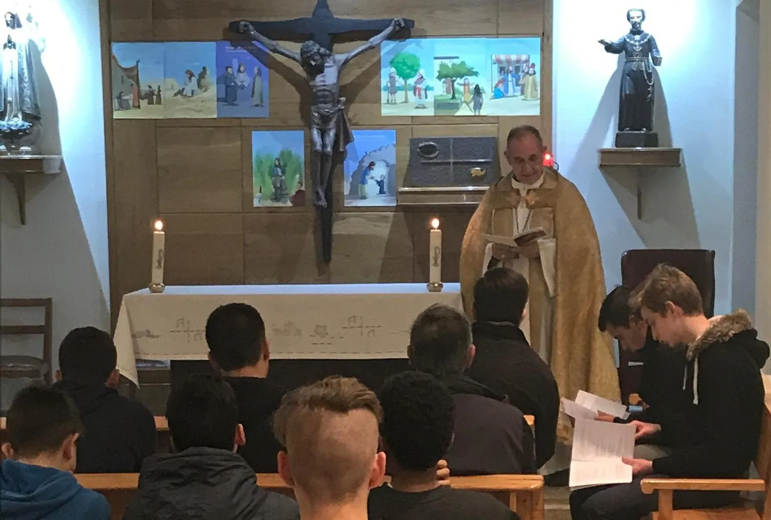Asistieron a un rezo de Vísperas, y posteriormente tuvieron una velada festiva, a la que se sumaron antiguos alumnos