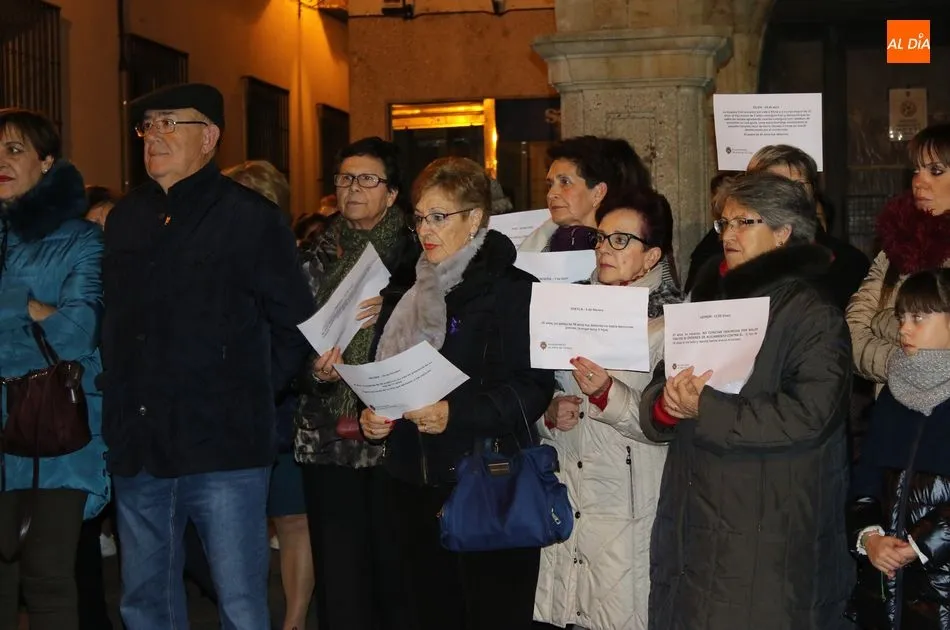 Después, en la plaza mayor, Lourdes Vaquero leyó el manifiesto en contra de la Violencia de Género y el Ayuntamiento repartió pulseras y boligrafos gracias a la colaboración del Ministerio de Presidencia de las Cortes e Igualdad de Oportunidades.