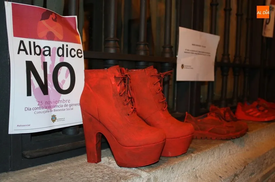 Un total de sesenta comerciantes dijeron ?no? en sus negocios a la Violencia de Género con zapatos rojos que incluían una ficha informativa sobre cada víctima y el lema ?Alba dice no?. En total, el Ayuntamiento de Alba de Tormes distribuyó 65 zapatos, que fueron pintados por 15 vecinos de forma voluntaria.