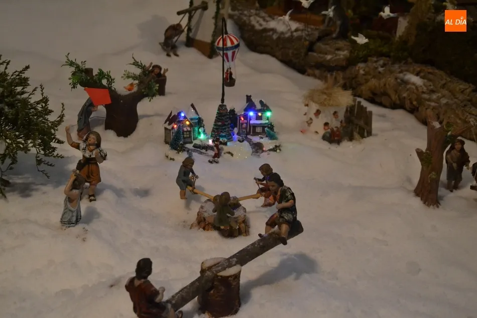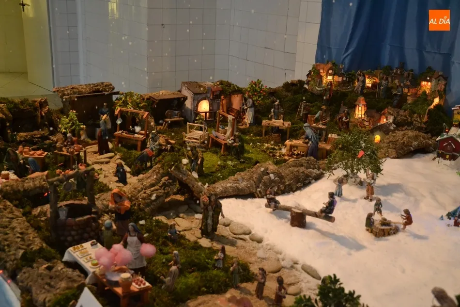 En este regreso, el belén vuelve a impresionar, tanto por su enorme tamaño (50 metros cuadrados) como por todo lo que contiene, ya que uno de sus rasgos distintivos es que un amplísimo número de las 300 figuras humanas con las que cuenta son mecánicas (además de objetos, como el puente levadizo de un palacio). Entre ellas están por ejemplo buena parte de las figuras que representan oficios artesanales, un niño que sube y baja de una palmera, o el mismísimo Niño Jesús y los camellos que hay postrados en sus inmediaciones.