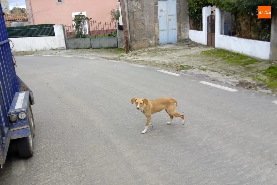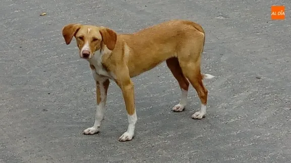Desde hace una semana los vecinos de la localidad de Picones han observado una perra de color marrón que parece extraviada. Como se aprecia en las imágenes, tiene además corbata blanca y calcetines blancos en sus patas.