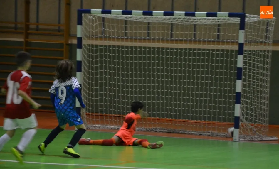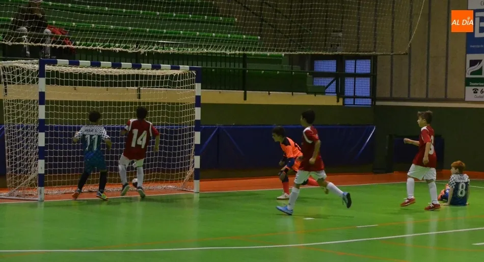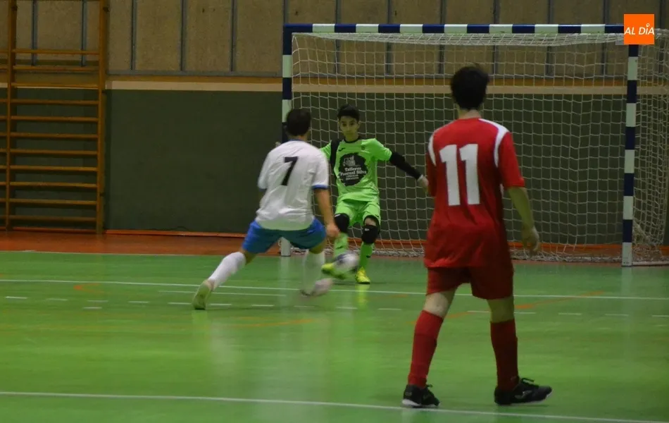 Dentro de esos minutos en los que estaban mejor los locales, llegó el 1-0, en una acción en la cual recibió el balón en la frontal Pablo Manzano, quién se dio la vuelta y disparó al fondo de la red. Ese gol rompió el partido, que se convirtió en un correcalles, con muchas idas y venidas, en una de las cuales el FS Salamanca estrelló el balón en el palo en el 13?. Tras otra buena opción de Pablo Uribe que se perdió por poco, los visitantes acabaron por lograr el empate en el 14? tras una gran diagonal al área.