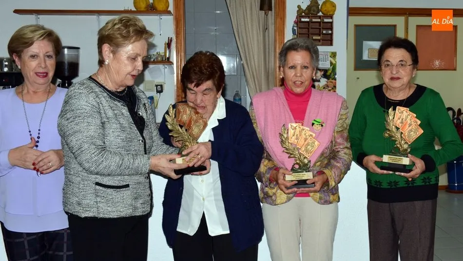 Campeonas y subcampeones recibieron sus trofeos de manos de miembros de la directiva de la Asociación de Mayores Liminares, promotora de este campeonato de juego de cartas, este domingo en la sala de la cafetería del hogar, donde ya se respira el ambiente navideño con la instalación del Belén de Angelita Hernández, encargada de la cafetería.