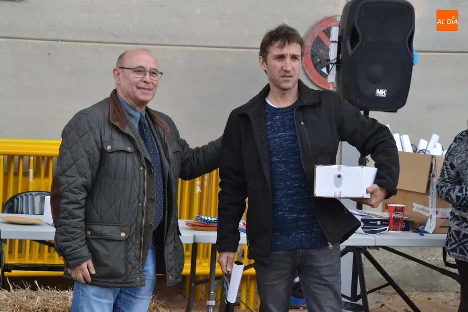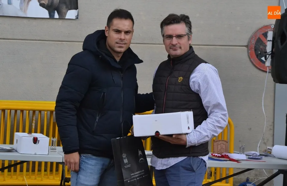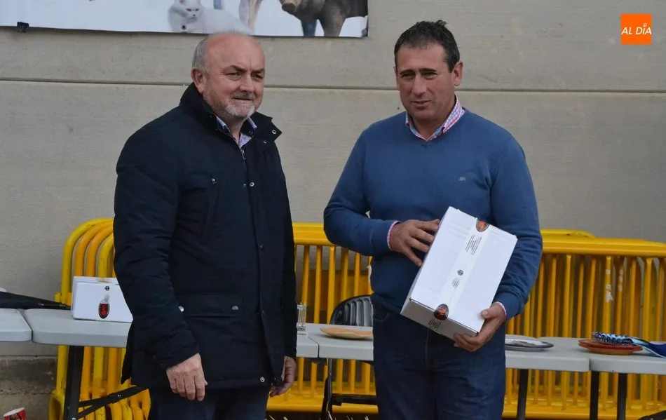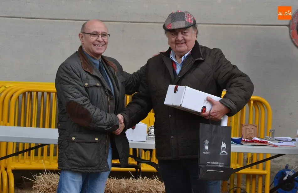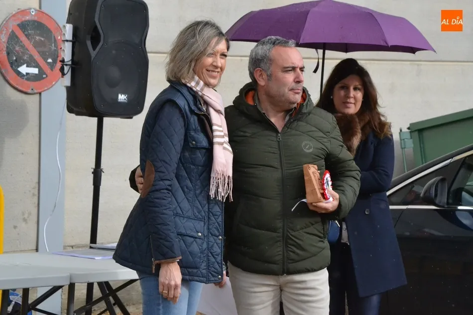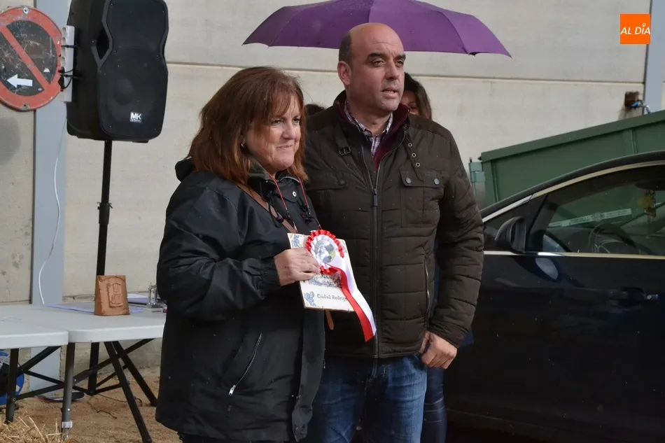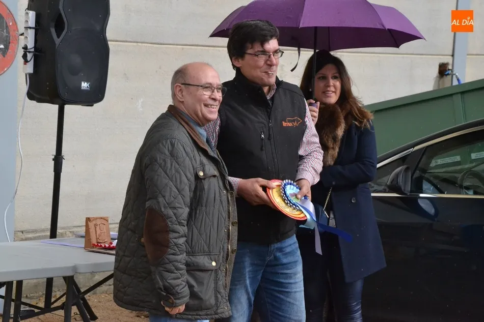 En esta ceremonia (que comenzó con 35 minutos de retraso, con los animales ya desalojando la nave), participaron los concejales Ramón Sastre, Víctor Gómez, Vanesa Muriel, Jorge Labajo y Carmen Lorenzo, y los integrantes de la Unidad Veterinaria de Ciudad Rodrigo Isidro Molinero y Rosa Mª Bravo, que fueron entregando varios obsequios a los mejores ejemplares de cada una de las razas de ganado bovino con las cuales ha contado este año la Feria de San Andrés (la mayoría ganado charolés). Hay que apuntar que en el tramo final del acto empezó a llover con fuerza (aunque se mantuvo el sol).