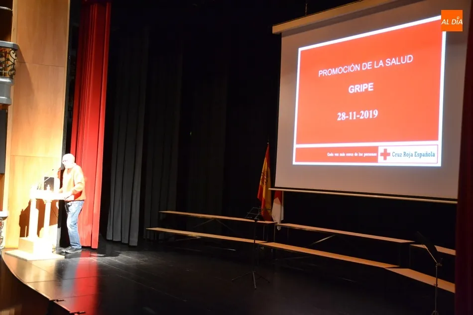 A continuación, tuvo lugar la primera actividad de la tarde, una charla sobre la gripe a cargo del enfermero ya jubilado Luis Percero Percero, quién ha colaborado en varias ocasiones con la Asamblea de Cruz Roja en Ciudad Rodrigo. Concluida la charla, salieron al escenario los integrantes de la Coral Dámaso Ledesma, quiénes ofrecieron un concierto, en el que interpretaron piezas como Ojos de España, Zorongo, Paloma mensajera, Boga, Maite, Acordai, O voso galo, o Canción de ronda, entre otras.