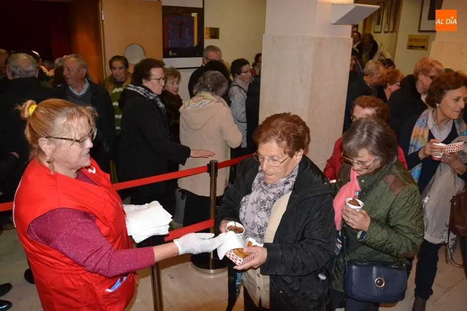 Como remate de la tarde, nada más concluir el concierto todos los presentes en el Teatro pudieron recoger en el hall un vaso de delicioso chocolate caliente y unos churros para merendar en las dependencias del edificio o bien en el exterior, como optaron por hacer algunas personas ante el ajetreo que había en el interior.