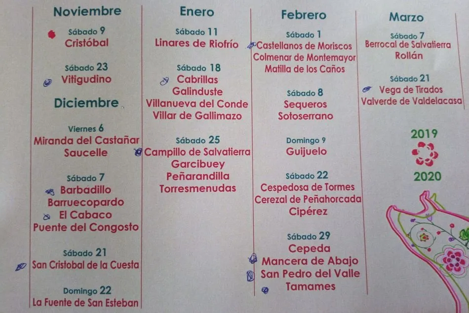 Miranda del Castañar y Saucelle acogerán estos actos el próximo viernes, que es festivo. Y el sábado esta celebración llegará a Barruecopardo, Barbadillo, El Cabaco y Puente del Congosto. Las actividades y horarios de cada uno de los municipios las puedes ver en los carteles que adjuntamos.
