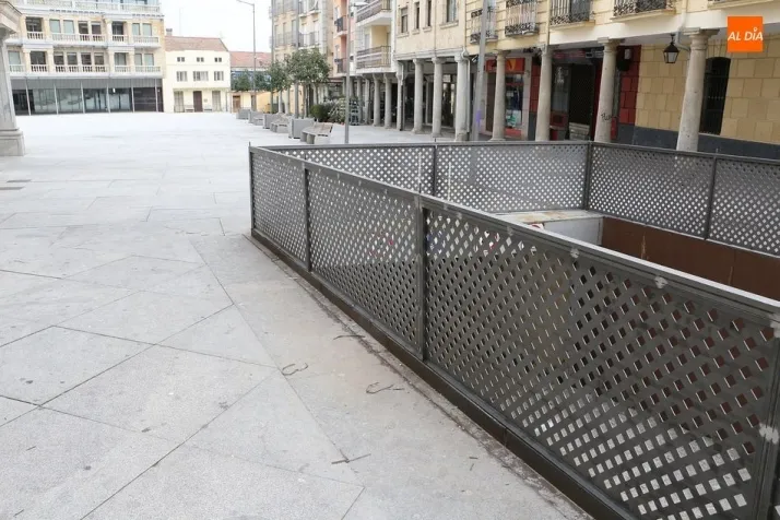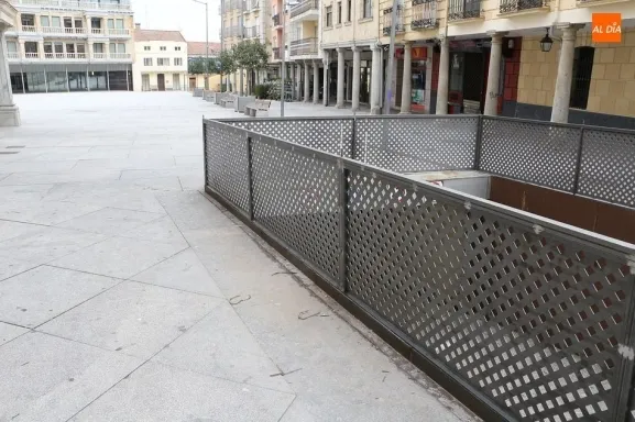 El Ayuntamiento continúa con los trabajos de mejora en el entorno de la Plaza Mayor. La pasada semana se comenzó con el repintado de estructuras en la plaza, incluyendo las torres de ventilación y la entrada al aparcamiento subterráneo que incluye el ascensor a nivel de calle. Hoy han comenzado los trabajos de susti