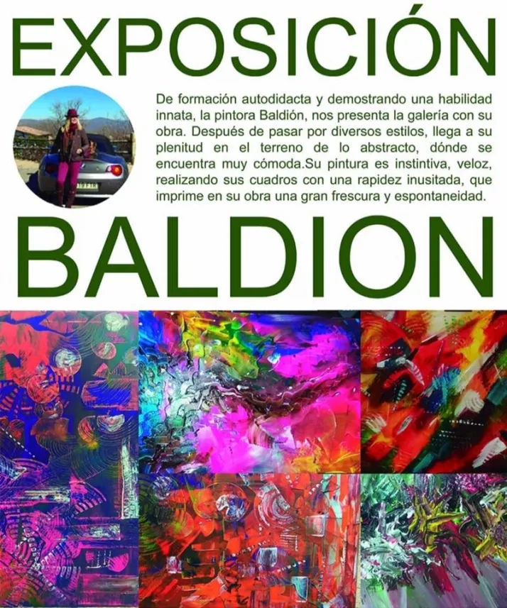El Ayuntamiento de la localidad, que organiza la muestra, habla así de la artista: ?De forma autodidacta y demostrando una habilidad innata, la pintora Baldión, nos presenta la galería con su obra. Después de pasar por diversos estilos, llega a su plenitud en el terreno de lo abstracto, donde se encuentra muy cómoda. Su pintura es instintiva, veloz, realizando sus cuadros con una rapidez inusitada, que imprime en su obra una gran frescura y espontaneidad?.