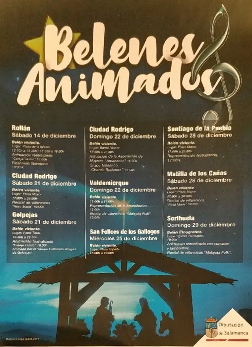 Ciudad Rodrigo: 21 diciembre. Belén viviente en la plaza mayor y recital de villancicos Rosa María. Y 22 diciembre Belén viviente en barrio nuevo, actuación Asociación de Mujeres Amanecer y grupo folklórico Charaiz Redondo.