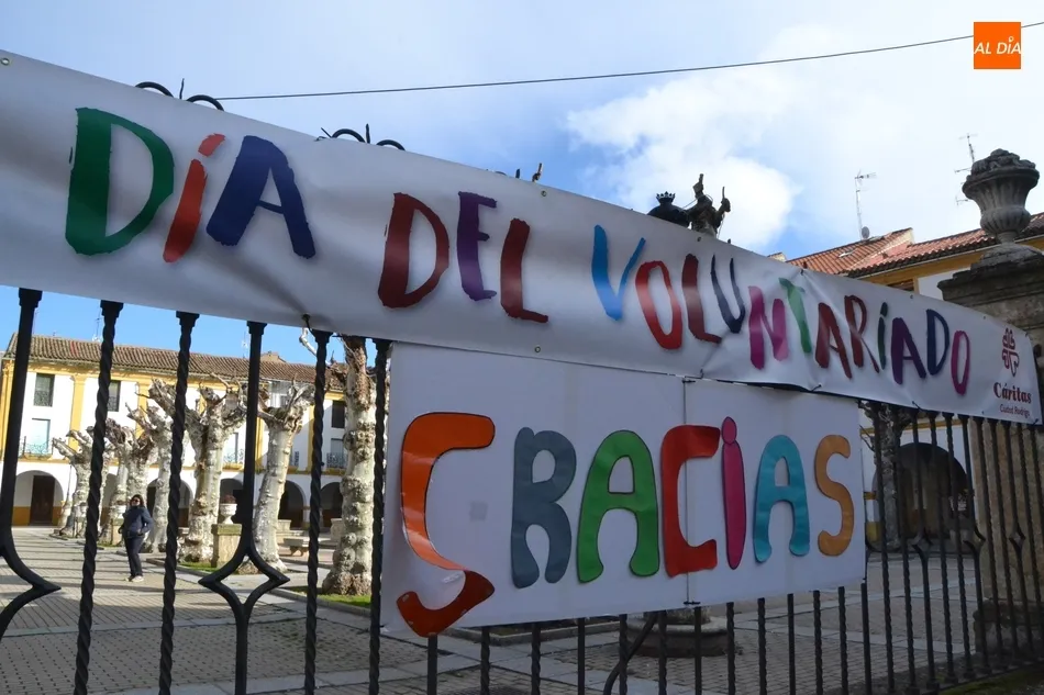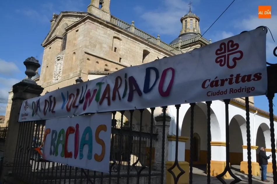 Cáritas Diocesana de Ciudad Rodrigo llevó a cabo a lo largo de la jornada del jueves un homenaje a todos los voluntarios, tanto los suyos como los de otras organizaciones, con motivo de la celebración del Día Internacional del Voluntariado. Este homenaje comenzó a primera hora de la mañana en la Plazuela del Buen Alcalde, en cuyo enrejado se colocó una doble pancarta con el texto Día del Voluntariado. Gracias.