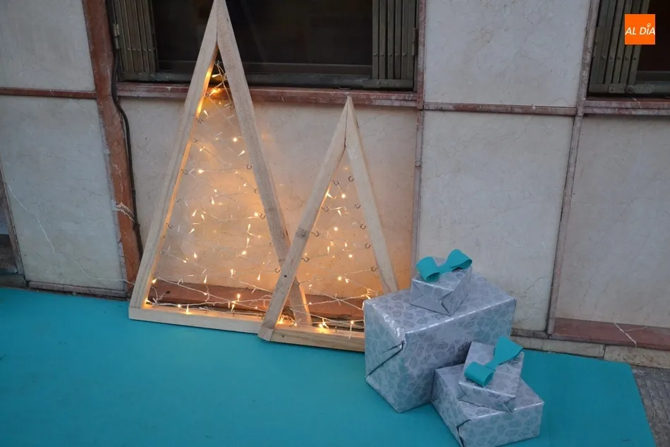 Los árboles, en este caso con listones de madera rodeados por luces, son uno de los ejes de la nueva zona de las calles Sierra de Gata y Campo de Toledo (la zona 6 a efectos de Concurso), donde también se han colocado unas cuantas cajas de regalos (así como un nuevo alumbrado). La octava zona participante en el Concurso es la Calle Cadimus, donde está decorado el Bar El Álamo con elementos de lo más variado.