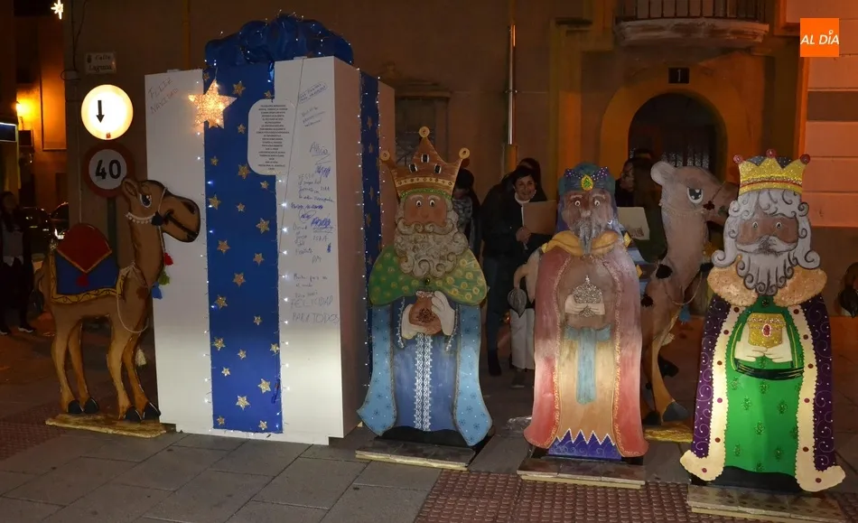 Se trata, por un lado, de la zona de las calles Santa Clara, San Fernando y Laguna (la zona 2 a efectos de Concurso), que han creado una ruta de los Reyes Magos, para lo cual han ?reciclado? algunos elementos de años anteriores, como los dromedarios o los buzones de cartas para los Magos de Oriente. La ruta tiene como meta las cercanías de La Glorieta, donde se han instalado unos Reyes Magos a tamaño real junto a una gran caja de regalo en la que, como novedad, todos los que quieran pueden dejar escritos sus deseos.