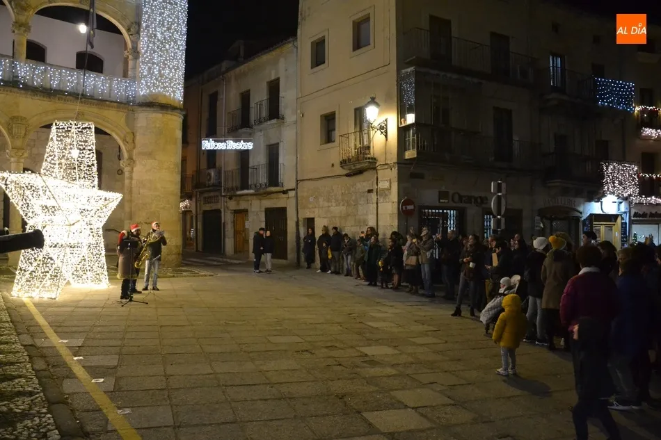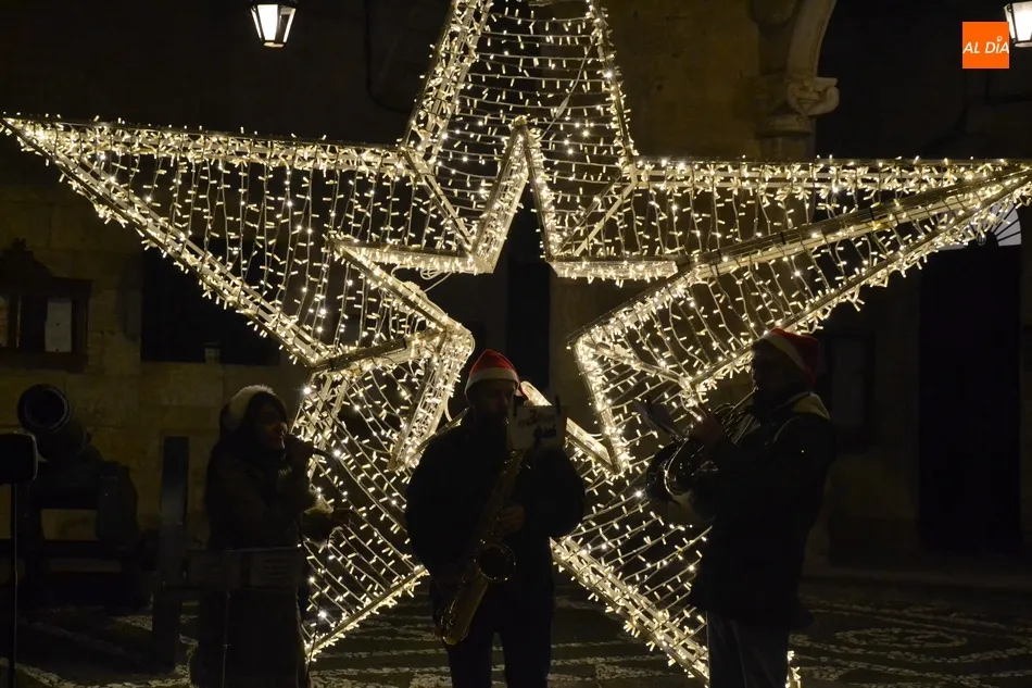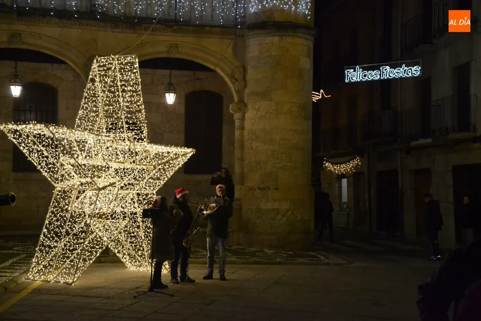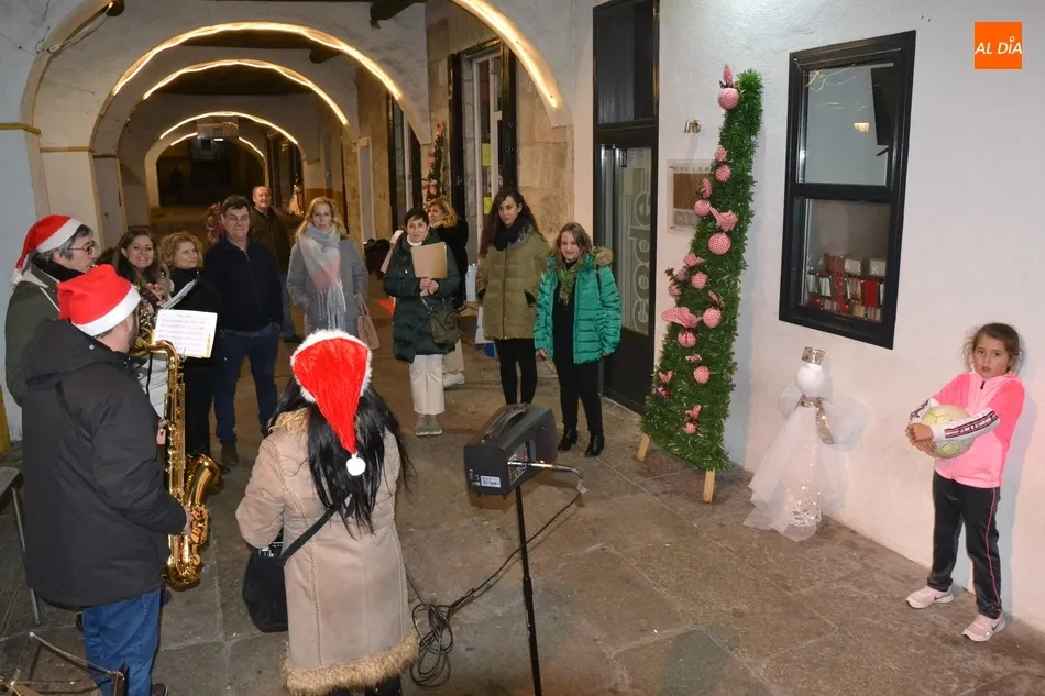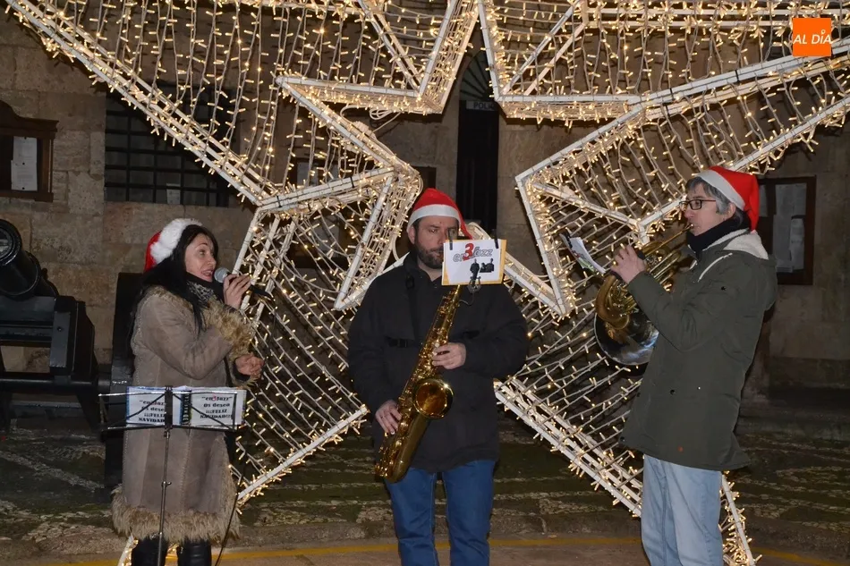 La ruta de los miembros del Jurado se remató en la Plaza Mayor, donde En3Jazz ofreció varios villancicos más junto a la estrella navideña situada a los pies de la Casa Consistorial, en torno a la cual se congregaron unos cuantos transeúntes. En total, hay unos 130 establecimientos comerciales involucrados en este IV Concurso de Decoración Navideña.